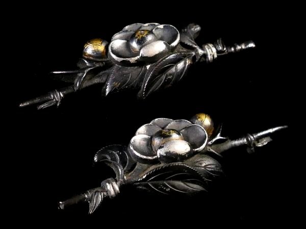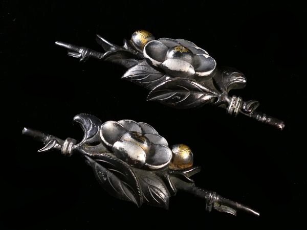 | 商品説明 | 繊細かつしっかりとした細工により 見栄え良き椿の図が施された 風雅な細工の一品です。 作行から見て 水戸系統の優品と推測しております。 詳しくは画像にてご確認下さい。 お好きな方、この機会に是非手に入れて下さい。 【見栄え良き金銀色絵】 【厚みのある細工】 【拵え栄えする一品】 寸法: 約 4.05cm × 約 1.30cm 約 4.03cm × 約 1.20cm 時代: 江戸時代 材質: 赤銅地 銘 : 無銘 状態:状態は画像の通りとなります。 多少の色絵の薄れくらいはございますが 洗練された造りの見栄え良き一品と存じます。 画像にてご判断下さい。 :その他、許容範囲内の時代傷みはご理解下さい。 |