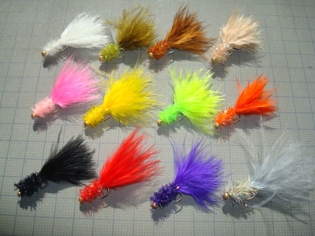 | 色: | ビーズのカラーは、ゴールド・シルバー・レッド。 フライのカラーは左上からホワイト・オリーブ・ブラウン・ナチュラル・ピンク・イエロー・チャートリュース・オレンジ・ブラック・レッド・パープル・グレーです。 |