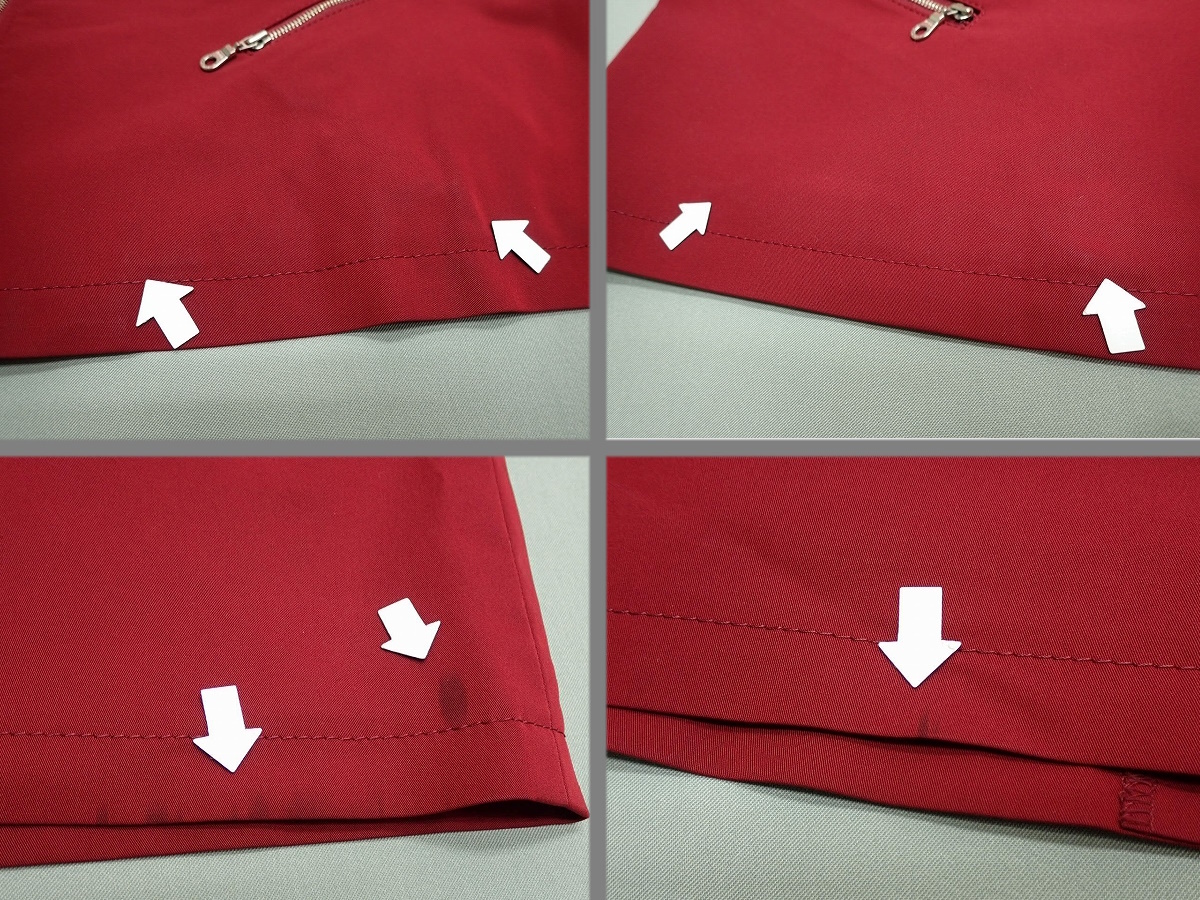 | こちらの商品は中古品です。使用感があります。 背中裏地や前裾周りに光沢跡が見られます。特に胸ジップ周りや右後ろ裾に黒い汚れが見られます。 | |