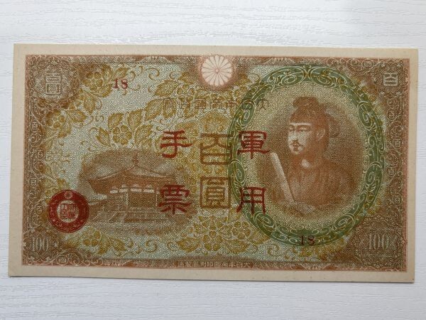 日華事変軍票 丙号(異式) 100円 紙幣 軍票 聖徳太子 極美品~未使用 No.6