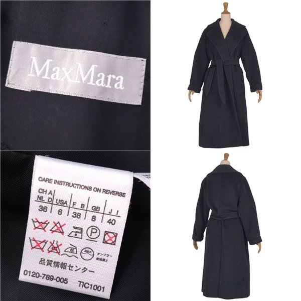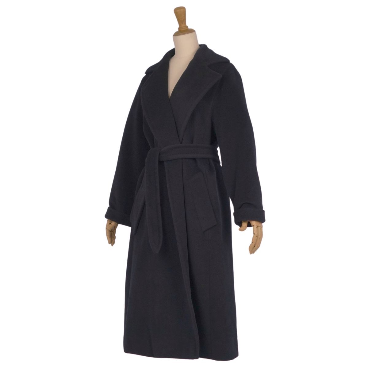 | 美品 マックスマーラ Max Mara コート ベルト付き ロングコート ガウンコート ウール アンゴラ レディース 40 ブラック |