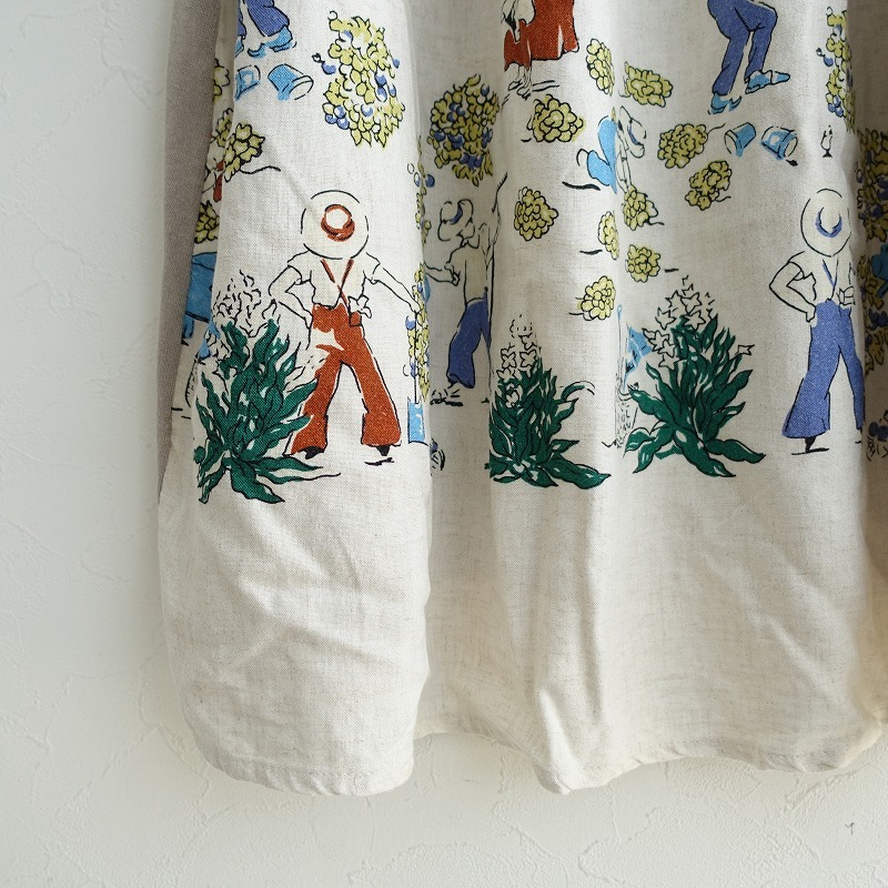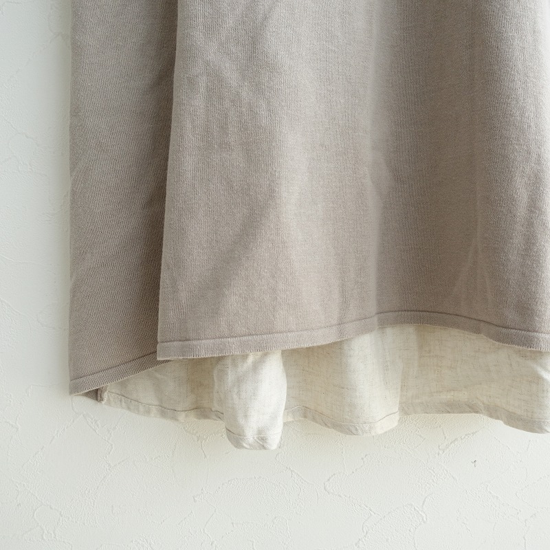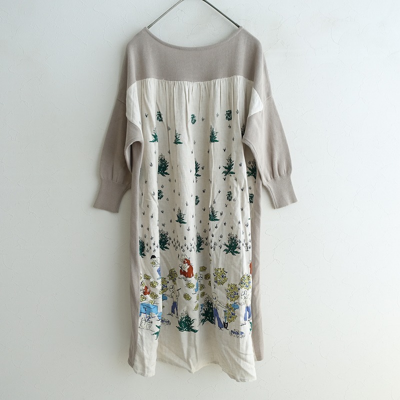 | BEARDSLEYのバックプリント切替えボートネックニットワンピースです。カラーはグレージュ無地&キナリベースに配色使いのプリントです。ドライな質感の、柔らかく程よい厚みのコットンニットを使用。バックにはプリントを配したレーヨンと麻の布帛があしらわれております。ボートネックにドロップショール、袖口はメリハリのあるリブニット。背部は切替えギャザーを配し、後ろ裾の長いAラインシルエットです。ポケットはございません。 |
