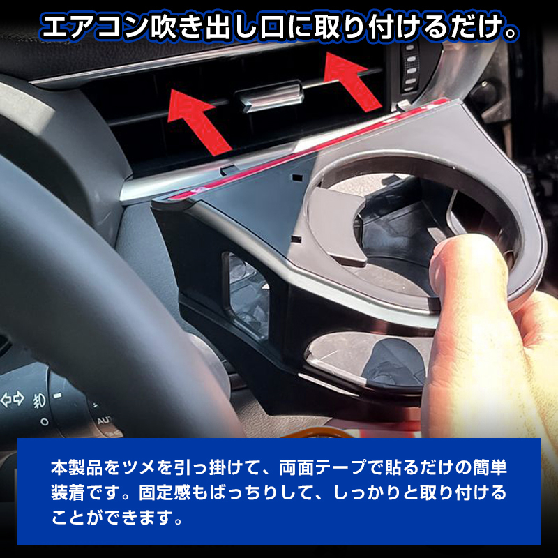 | 商品説明 | エアコン吹き出し口に取り付けるだけ。 飲みかけのドリンクもすっぽり収納できて便利です。 容器のサイズや形状に合わせて無階段調整可能な「スライドワォール」を採用する。 高品質ABS素材を採用しておりますので。剛性と耐久性も優れています。 滑り止めの両面テープ付きでカタカタ音を防ぎます。