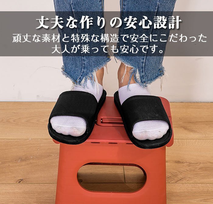 使い勝手が良い : 片手で踏み台を縦に立て、持ち手をパッと下に押して楽々展開して置くだけで使えます。使わない時、直ちに持ち手を引っ張って収納可能です。