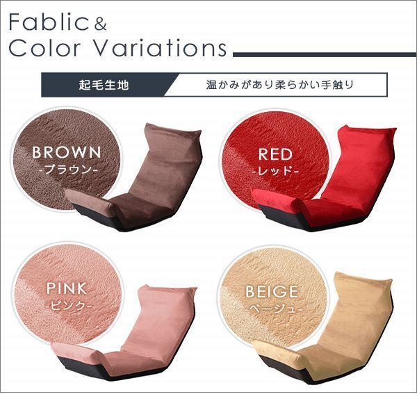 【ポイント】 14段階のギアチェンジで絶妙な角度に調整ができるアップスタイル! しっかりと体を支え、疲れにくい形状になっています。 コンパクトに折り畳むことができるので収納するのにも便利です。 生地はふわふわの起毛タイプとサラッとした通気性のあるメッシュタイプがございます。 |