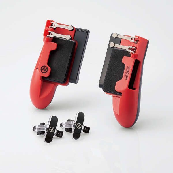 *大画面タブレットに装着し、8本指ゲームプレイを実現する 合計6ボタンのグリップ式ゲームコントローラです。 ダイレクトタッチボタンが2個付属し、タイムラグの無い操作が可能です。 *グリップを基点に親指画面操作と画面背面のツイントリガーボタン並びに 画面側面のダイレクトタッチボタンをプレイヤーに合わせレイアウト可能。 *ダイレクトタッチボタンはタイムラグの無い画面操作が行えます! *左右分離型のグリップには可変式スタンドが装備されており、 手持ちでも、机などに置いた状態でも使用可能です。 *可変式スタンドは動画などの観賞にも便利です。 *グリップ部の画面タップは高感度で的確な画面タッチです。 跳ね上げ式なので画面メンテナンスも簡単に行えます。 *端末への固定は画面に極力被らないよう考慮しております。 2段階押し込みロックでガッチリ固定できます。 *グリップサイドに充電、イヤホンのケーブルを接続できる 差込口を装備しています。 *ボイスチャット使用時にボタンのカチカチ音が入りにくい 静音ボタンを採用しています。 *仕様 タイプ : グリップタイプ セット内容 : グリップ部左右各1個、ダイレクトタッチボタン2個 ボタン数 : グリップ部4ボタン(左右各2ボタン)、 ダイレクトタッチボタン2、合計6ボタン ボタン方式 : グリップ部:トリガー式、ダイレクトタッチボタン:タッチ式 クリック音 : グリップ部:静音、ダイレクトタッチボタン:無音 ケース対応 : 非対応 対応機器サイズ : 厚み5.5~8.2mm、ベゼル20mm以下 (機器本体・ケース・フィルムの厚みを含む) 対応画面サイズ : 不問 電源ケーブル対応 : ○ 有線イヤホン対応 : ○ 視聴用スタンド : ○ 材質 : 金属部:亜鉛合金(黒クロームメッキ)、 プラスチック部:ABS・PC、クッション部:シリコン・EVA カラー : グリップ部:レッド、ダイレクトタッチボタン:クリアー 外形寸法(質量) : グリップ部=約W60xH125xD60mm x2個、 ダイレクトタッチ部=約W38xH42xD22~30mm x2個(合計約140g) 付属品 : マニュアル※製品本体と付属品(製品の元袋や元箱有)のみの発送です。 それ以外のタブレットのようなものなどが画像に写っている場合は付属致しません。 グリップ