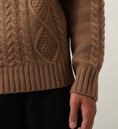 こちらは俳優の佐藤健さんが、YouTubeを開設した際の一番最初の動画で着用された、同系同色のタートルニットセーターです。カラーはブラウンになります。 全体に特有の柄が施された、シンプルながらデザイン性も兼ね備えた非常に使い勝手の良い万能ニットです。アウターとしても、インナーとしても大活躍間違い無しです。ベースは一応メンズ物となりますが、レディースとして女性の方でもオーバーサイズニットとして着ていただけるアイテムです。ニット特有のチクチク感がなく、さらに水洗いも出来るアクリルニットなので、お手入れが簡単な点が最大の魅力です。 |