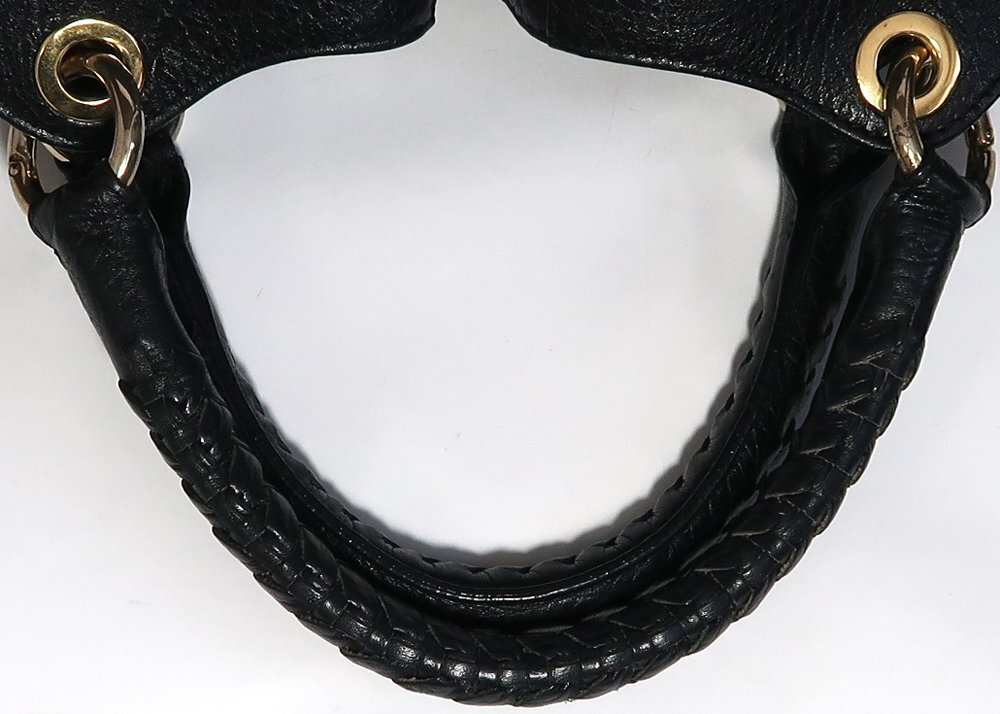 出品は画像のバックのみです。使用品ですので所々に擦れや汚れは有ります。金具はメッキの色落ちや細かい擦れあります。使用出来ないようなひどいダメージはないです。バックのサイズはW29xH21xD11cmくらいです。