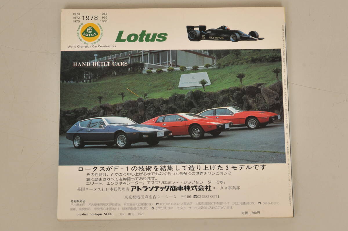 | 書籍 1冊 中古品です。 ※1枚目の画像が出品の全てです。※ ◇THE LOTUS 1978 英国・純スポーツ・カーの雄・ロータス ◇昭和53年10月30日発行 ◇133ページ ・裏表紙に折れ目が付いています。 ・古本ですので汚れ、スレ、日焼け、黄ばみ、シミ、折れ等はあります。 ・ページの乱丁、落丁等の確認はしていません。 ・小口にシミ、黄ばみ、汚れがありキレイではありません。 ・古い品物ですので古本臭します。 全ページを確認した訳ではありませんのでダメージのある場合があります。 画像でご確認の上、現状で構わない方の入札をお願います。 かなり古い品物ですので状態に神経質な方は入札をご遠慮下さい。 ※評価新規の方は先に質問欄から購入意志のご連絡をお願いします。 先にいただけない場合は入札を取り消しますのでご了承下さい。 ・状態に神経質な方の入札はご遠慮ください。 ・入札後の取り消し依頼はお受けしませんのでよくご検討の上、ご入札お願いします。 ・新規の方、悪い評価の多い方、こちらの判断で取り消します。ご了承下さい。 新規の方は質問からご連絡下さい。 ・画像で判断出来る方の入札をお願いします。 ・ご質問は終了日前日までにお願いします。 ご質問の回答には時間をいただく場合があります。 ノークレーム、ノーリターンをご了解の上、入札をお願いします。 | ||