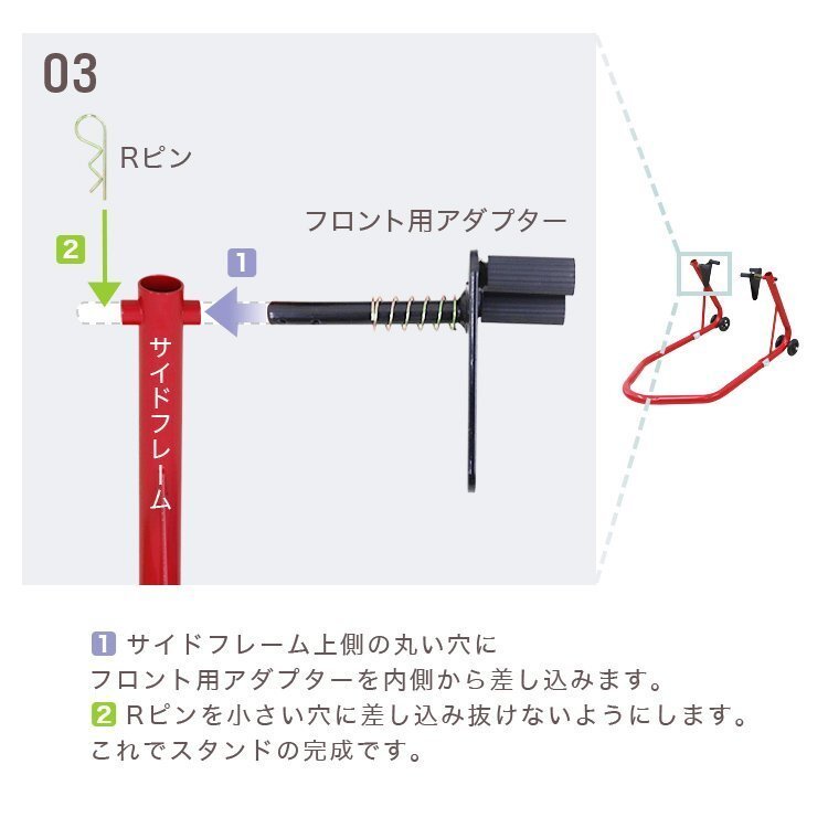 | \ 前輪(フロント)専用プロ仕様バイクスタンド / 保護ラバー付きでバイク車体を傷つけない! キャスター付きなので安定した状態でスタンドUP可能!! オートバイのディスプレイ・ホイールの取り外し作業や、 タイヤ脱着やエンジン回り・チェーン等のメンテナンスに使えます! ■商品コード:A49S ■商品仕様 カラー:レッド 積載能力:340kg(750LBS) 重量(約):4.5kg 開口幅(約):285~360mm ブラックカラーはこちら ■注意事項 ・簡単な組立式ですが、説明書が付属していません。 ・一部ご使用できない車種もありますので、よくご確認の上ご購入して下さい。 ※フェンダーカバーが深いタイプやアンダーカウルの付いているタイプなど ■保障期間 7日間 ※商品到着後7日以内の初期不良・破損のみご対応させていただきます。 【新品未使用品です】 ▼検索ワード バイクスタンド メンテナンススタンド バイク スタンド フロント リア レーシングスタンド バイクリフト メンテナンス 後輪 中型 大型 整備 |
