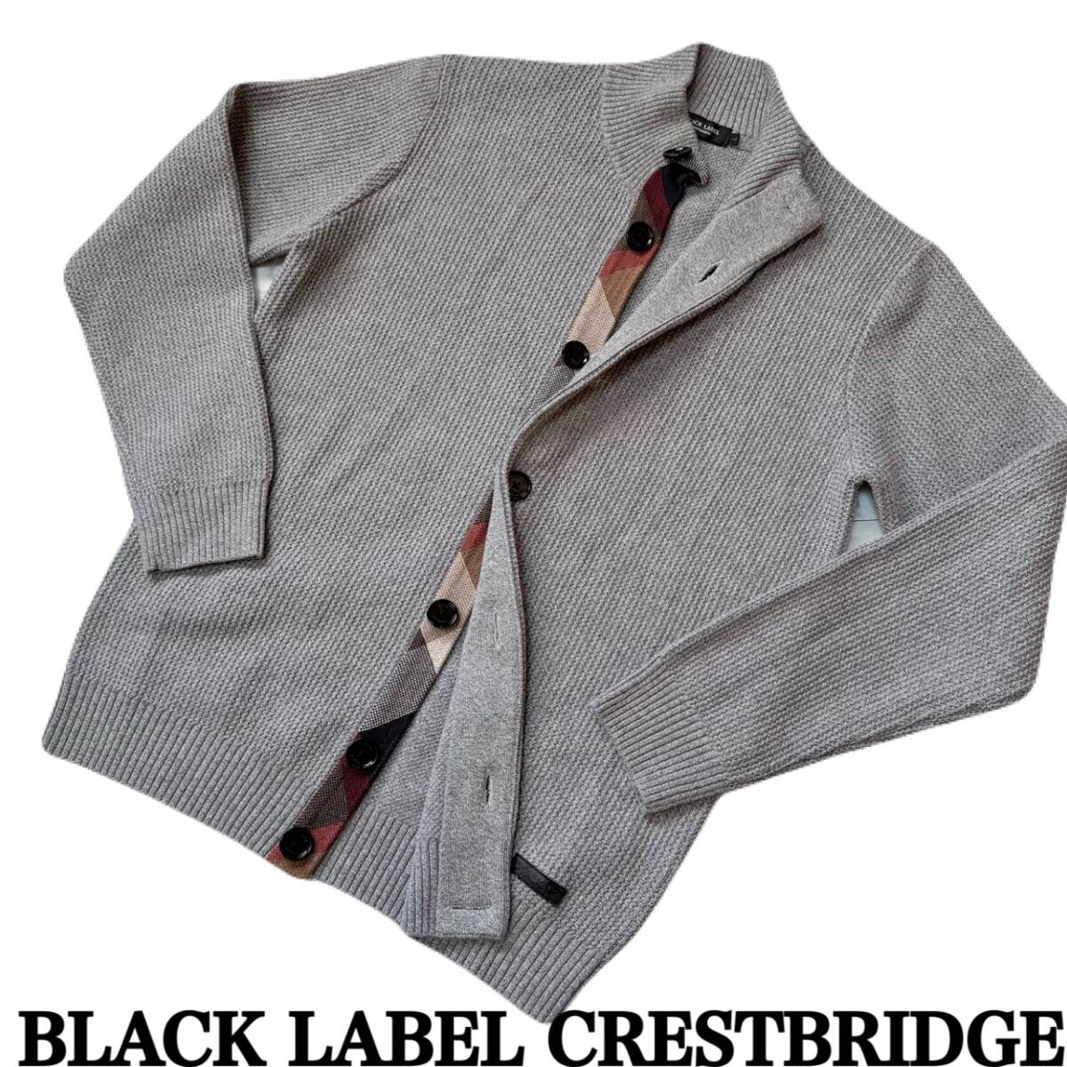 | ★ 商品名 ★ BLACK LABEL CRESTBRIDGE ブラックレーベル・クレストブリッジ パーシャルチェックハイネックカーディガン グレー サイズ L 美品 ★ |