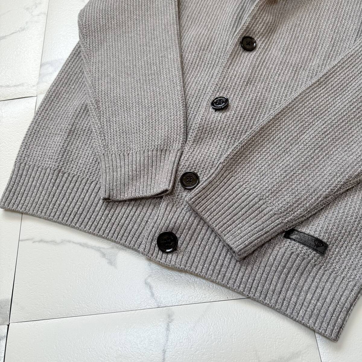 BLACK LABEL CRESTBRIDGE ブラックレーベル・クレストブリッジ パーシャルチェックハイネックカーディガン グレー サイズ L 美品になります。 【スタンドネックの着回し抜群定番カーディガン】スタンドネックタイプのカーディガン。羽織りとしても、コートのインナーとしても重宝する一枚です。下前立てにはアイコニックなクレストブリッジチェック柄をジャカードであしらうことでアクセントになっています。素材には綿×毛の糸を使用。凹凸感があるタック組織にする事で、温かみと立体感のある風合いに仕上がっています。 ★品番 51N10-210-04 ★カラー グレー ★サイズ L ★品質 綿40% 毛40% ポリエステル20% チェック部分 綿50% アクリル50% レザー部分 合成皮革 ★参考価格 27.500円 ★平置きサイズ 肩幅41㎝ 身幅52㎝ 着丈68㎝ 袖丈63㎝ 多少の誤差はご了承下さい。 ★状態 中古 着用感少なく、良い状態です。 中古品もご理解の上、ご検討頂けましたら幸いです。 | ||||||||