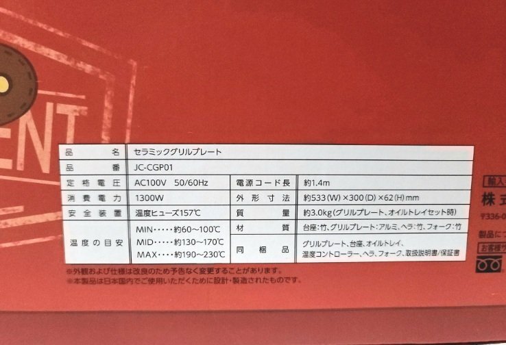 ★美品★ JENICA ジェニカ セラミックグリルプレート JC-CGP01 ホットプレート 家庭用 キャンプ 焼肉 ホームパーティー 焼きそば 2019年製 |
