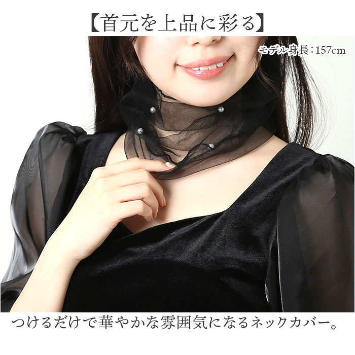 | 商品説明 | ・・【首元を上品に彩る】 ・つけるだけで華やかな雰囲気になるネックカバー。 ・【おしゃれなデザイン】 ・ふわっとしたチュールとちりばめられたパール調がおしゃれで上品なデザイン。 ・【気になる部分をカバー】 ・サッと付けるだけで首元のシミやシワをさりげなくカバー。日焼け対策にもおすすめ。 ・【軽やかな着け心地】 ・伸縮性のある生地なので締め付け感がなくストレスフリー。 ・【アクセサリー感覚で】 ・ベーシックカラーやアクセントにもなる豊富なカラーバリエーション。フォーマルシーンにも◎ |