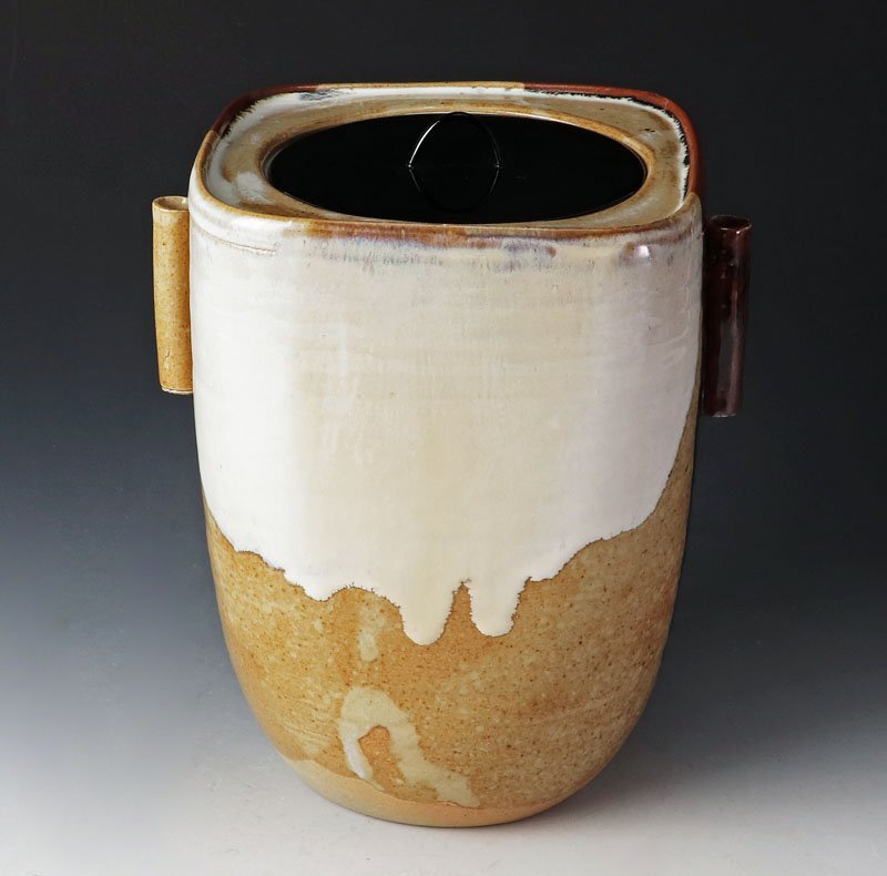 | 【古美味】松古窯 佐久間勝山『鵬雲斎書付』模仁清 高取管耳水指 茶道具 保証品 |