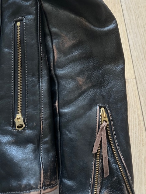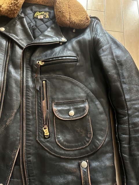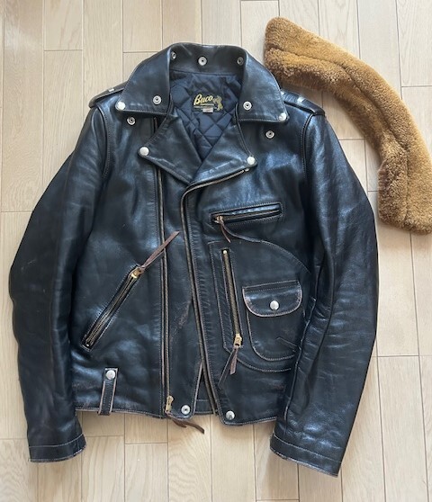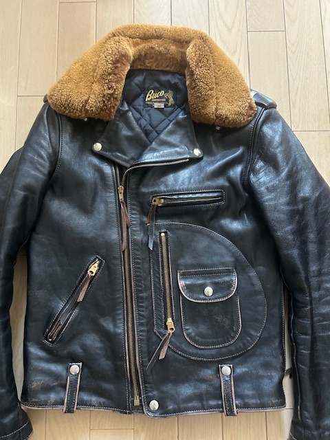 リアルマッコイズが復刻したBUCO J24L ムートンカラー付きです。ライダースの完成形といわれるスタイリッシュなスタイルと、タンニン鞣し、ピグメントフィニッシュのホースハイドで極上の茶芯が表れています。ブラスのファスナーと合わせてヴィンテージさながらの雰囲気です。| 出价者 | 信用 | 价格 | 时间 |