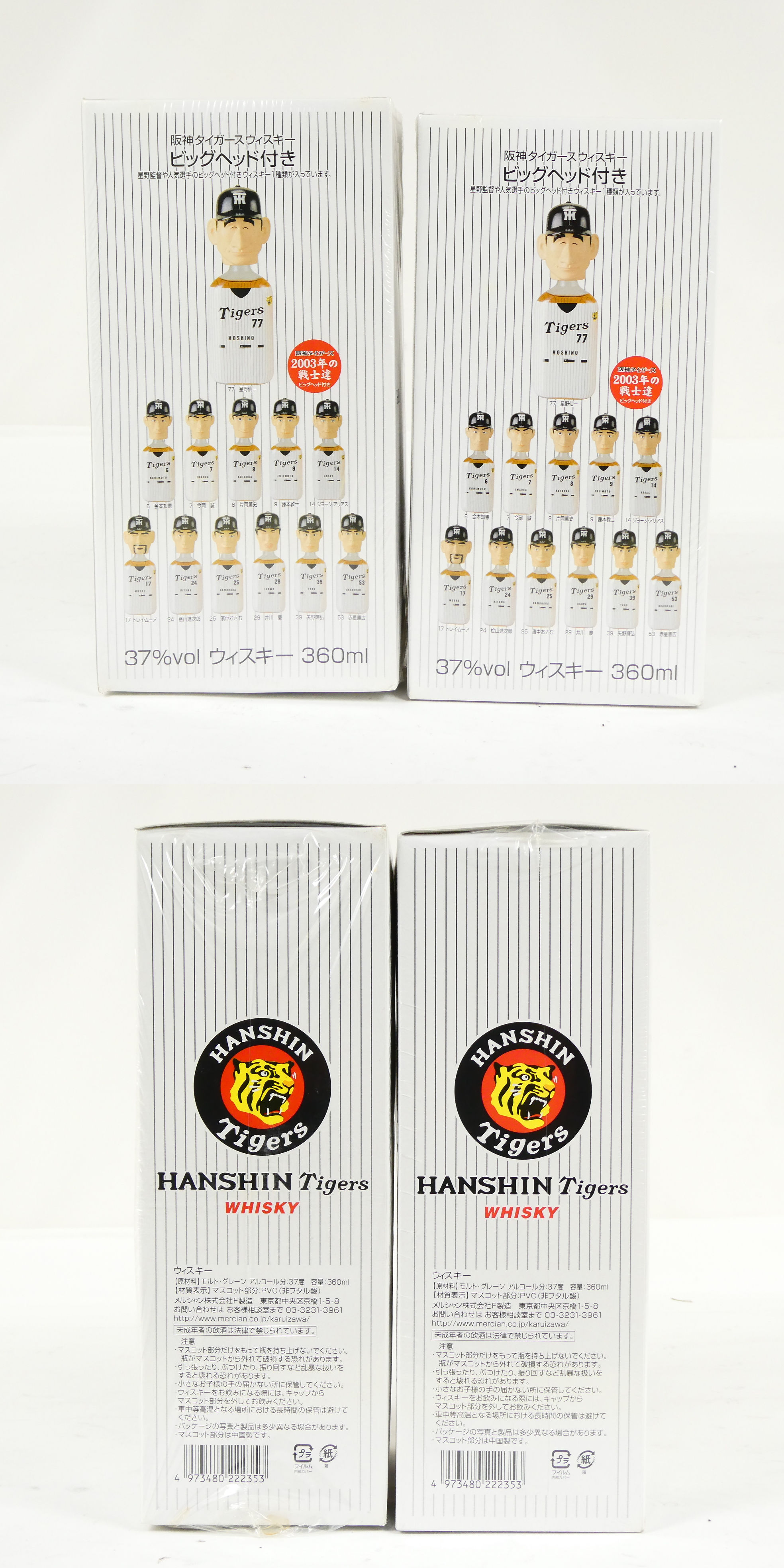 | 未開封 未開栓 古酒 ウイスキー 2点セット 阪神タイガース 2003年の戦士達 ビッグヘッド付 37% 360ml 保管品■ND210s■ |