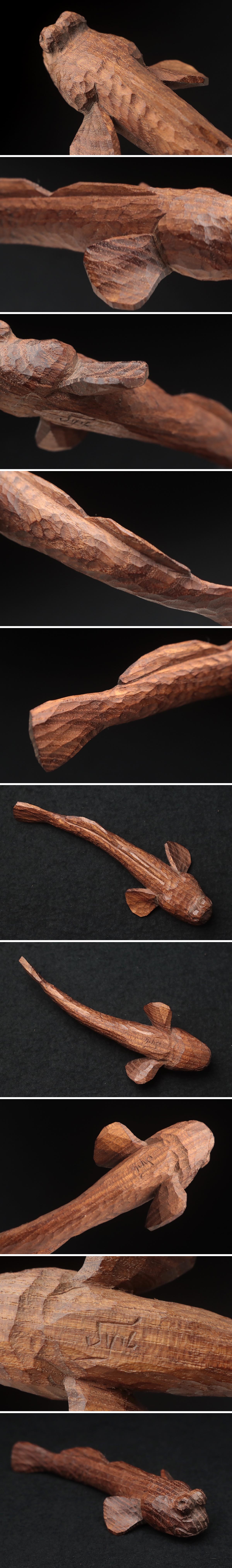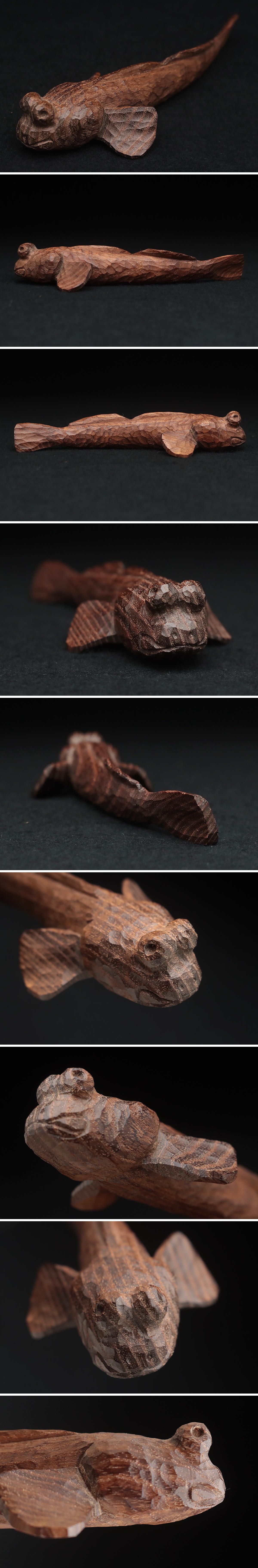 | ◆ 【荒井修 作】木彫工房SYU アイヌ美術 一刀彫 木彫「カジカ」置物 幅13cm「魚/さかな」 オブジェ 床置 床飾 伝統工芸 ◆