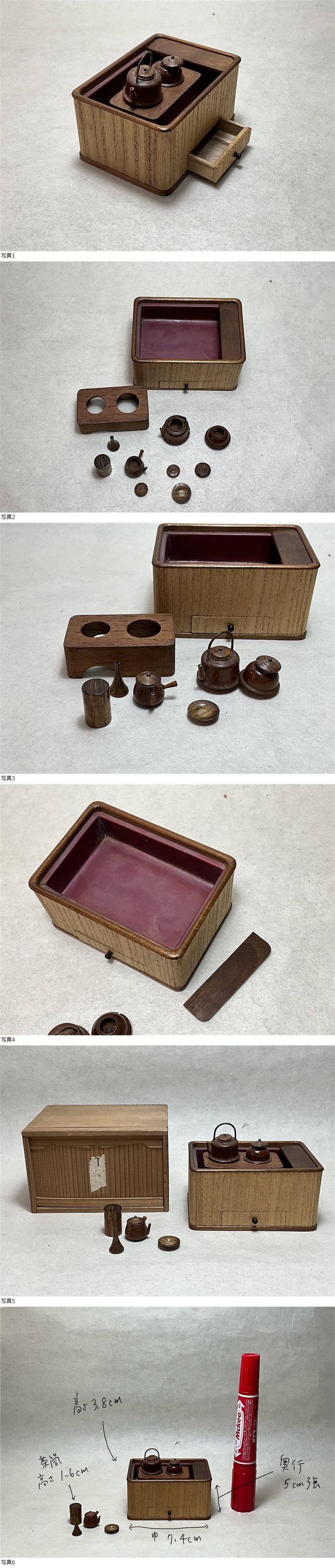 大きさは画像を参考にして下さい。側面の木目は桐?桑?と思います。まわりの茶道具は揃っていません。とても綺麗な細工モノです。
