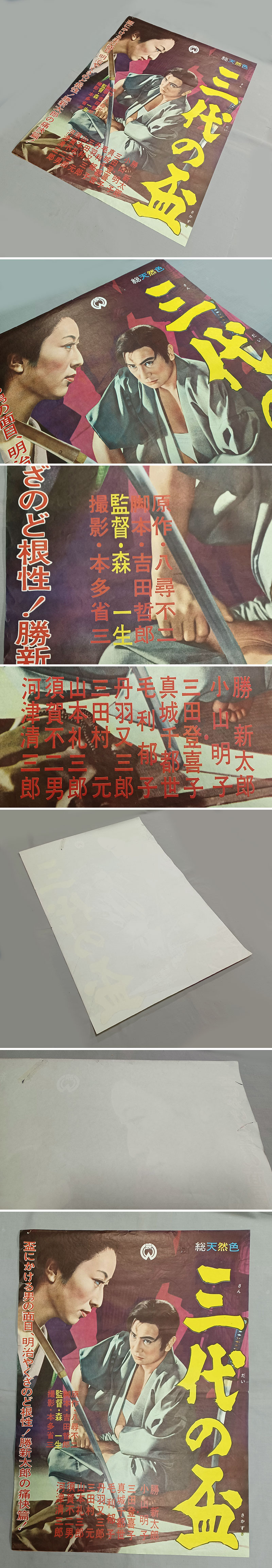 | ★映画ポスター、八尋不二 原作★森一生 監督、『三代の盃』、昭和37年、大映★勝新太郎、小山明子、三田登喜子ほか、週明け廉価出品 | ||||||||||||||||||