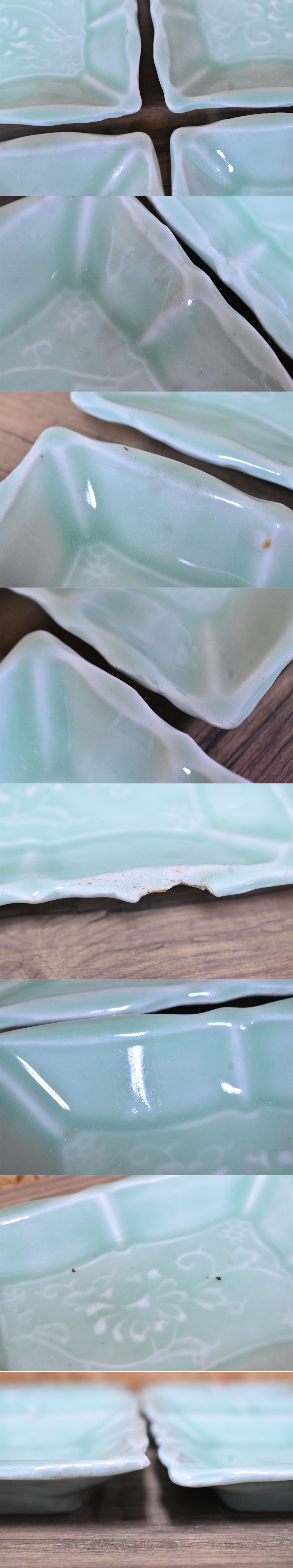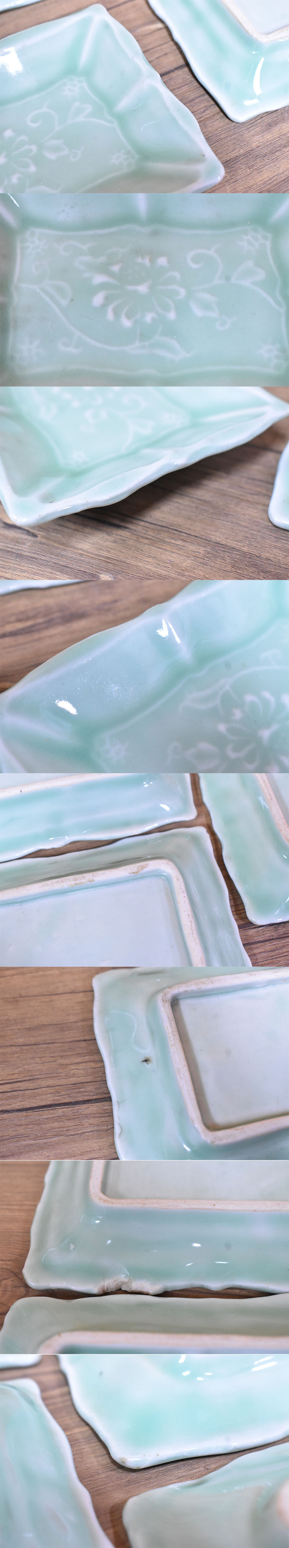 青磁/陽刻/長角皿/菊/食器/プレート/小皿/花柄/エメラルドグリーン/古美術/銘々皿/8枚セット/の出品になります。 コンディション 全体的に傷や汚れ、一部欠けがあります。 上記の点をご理解ご了承いただいた上で、ご入札お願いいたします。 |