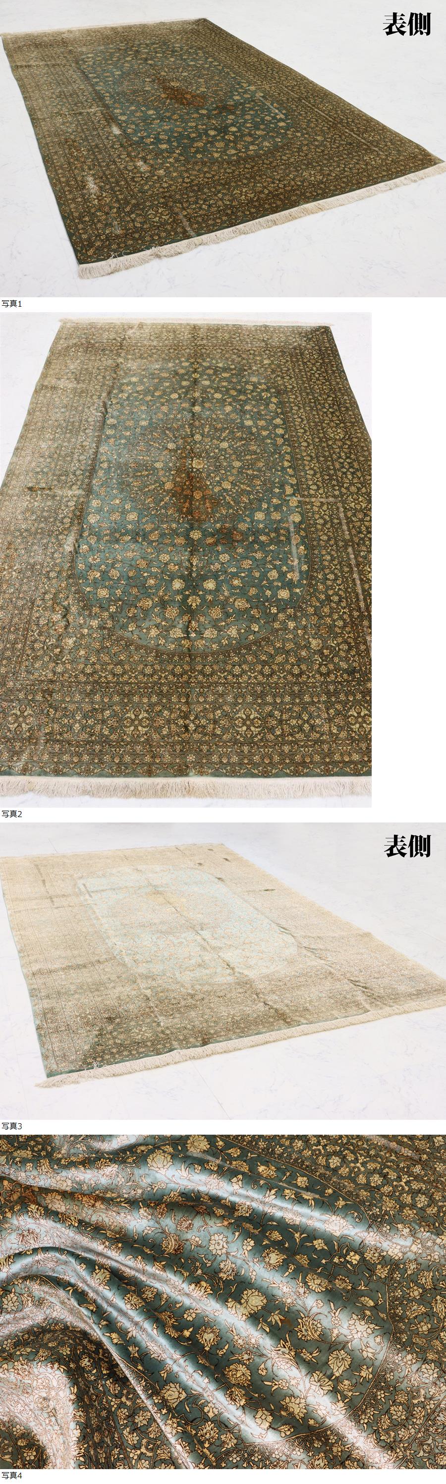 サイズ(約) 197.5×300㎝(フリンジ含まず)/厚み 3㎜ 付属品 - 百貨店1100万円購入品 最上手傑作品 クム産ペルシャ絨毯 アミリ工房秀逸作 特大判197.5×300㎝ 総シルク121万ノット 総手織り厳選絨毯 本物保証 某大企業役員様旧蔵品、購入価格1100万円!現在ペルシャ絨毯の新時代をリードする名店の一つ!「アミリ」工房の特大判総シルク最上手絨毯のご紹介になります! アミリ工房 新たなペルシャ絨毯を席巻し、歴史ある技術に新たな技法を用いて制作される、最高級感、エレガントで魅力的なを絨毯を発表し続ける名工房! 海外セレブや有名人を顧客に持ち、独特な芸術的な作品を得意とするデザイナーブランドとして大変有名な工房になります。 当作品は、一般用に制作される作品とは異なり、群を抜く出来栄えの逸品で市場では大変高額にてなかなか購入できない、最上手の気品あふれる特大判の大作品で、見事以外言葉がありません! 品質は特最上級シルク100%に総手織りによる121万ノットの作品で、100万ノットを超える大判作品は滅多なことではお目にかかれない超希少な厳選作品になります! 間違いのない、確かな作品でございます!どうぞお見逃しなく! 状態、若干の使用感と中央にシミがございます。クリーニングに出せばシミは落ちるかと思います。 気になる箇所は画像に掲載しておりますのでご確認の上入札お願いいたします! 大変希少で芸術的な作品です!大事にしていただける方の入札お待ちしております! 一度人手に渡ったものがほとんどの為、生活臭や保管臭等、臭いの付着があるものもございます。 臭いに関しては感じ方に個人差があるため、臭いが強いものに関しては説明欄に記載いたします。以上をご理解の上ご入札をお願いいたします。 絨毯に関しましては基本的にキャンセルはお受けできかねます。十分ご検討いただき、ご納得いただいた上でのご入札をお願いいたします。 |