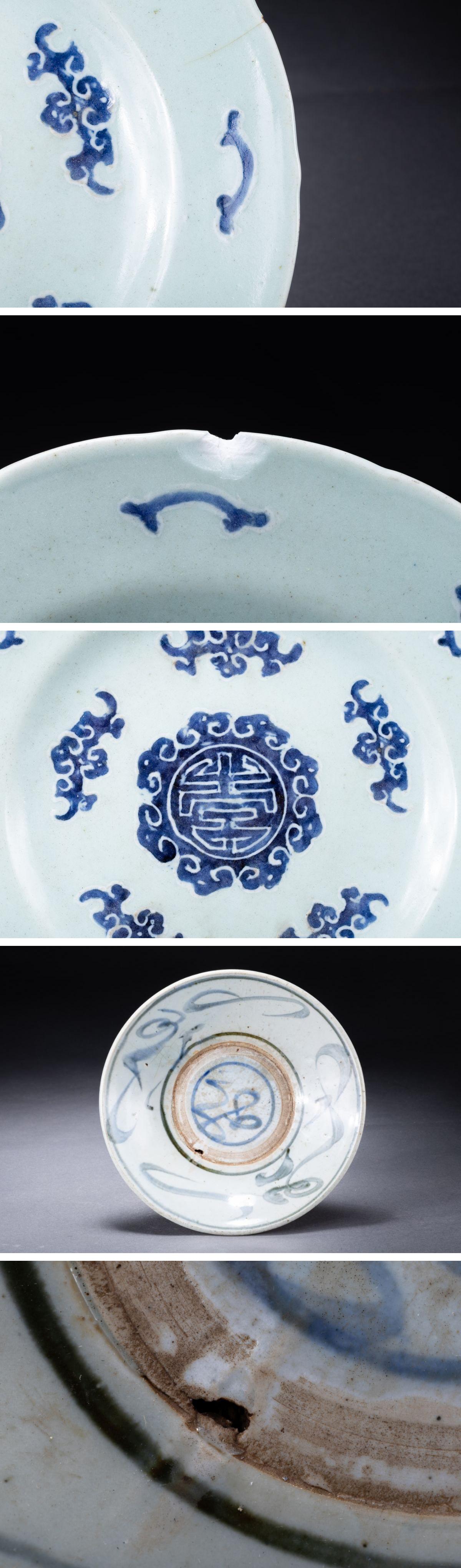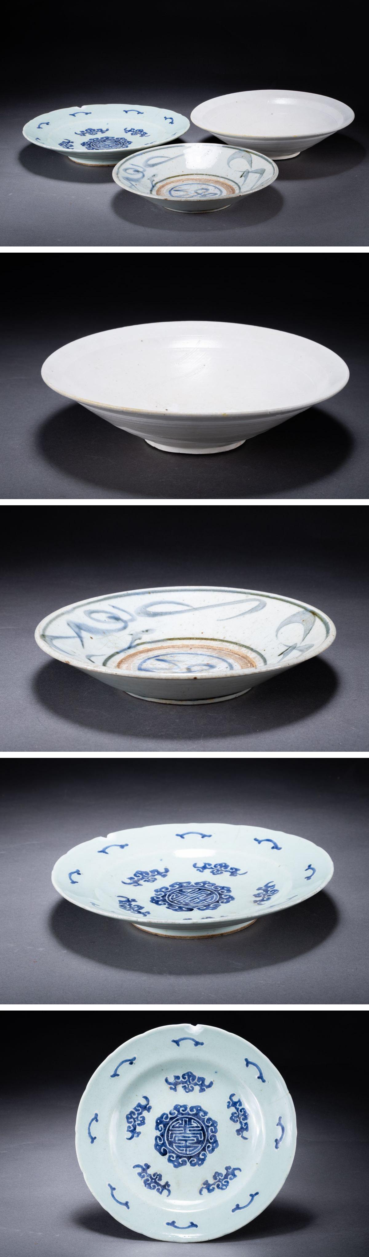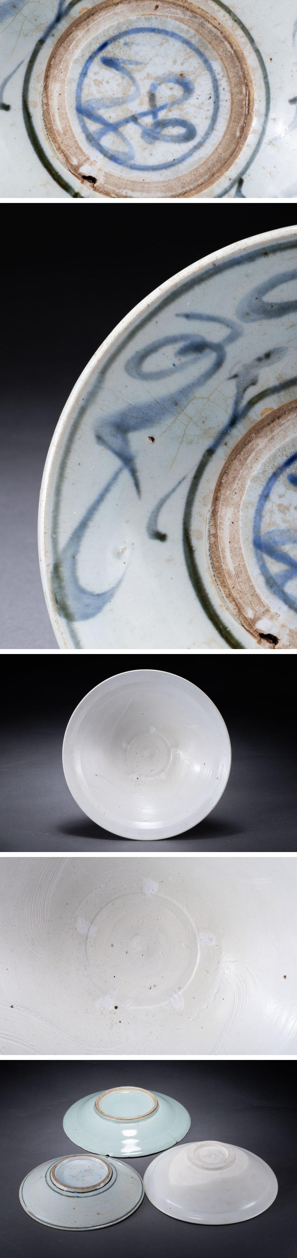 【華】某有名収集家買取品 時代物 中国伝来 染付き皿三枚 古美術 骨董品A25090116-PQ
