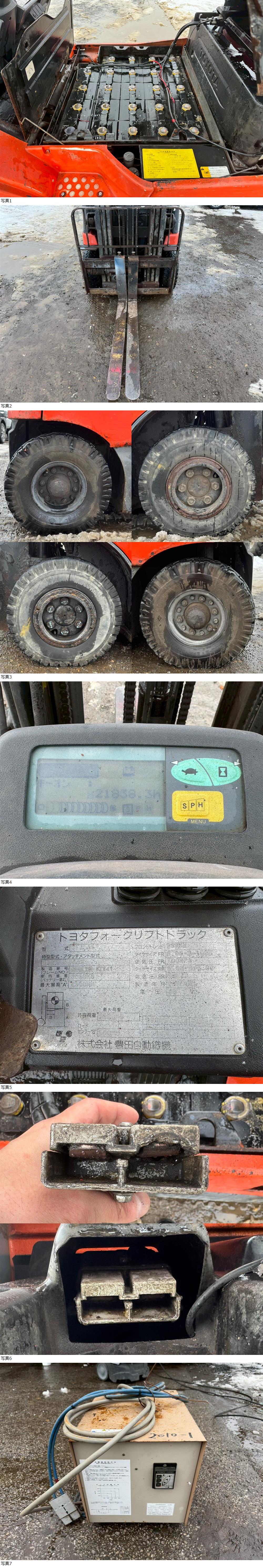 ●トヨタ フォークリフト GENEO-B ★始動OK!! メーカー名 :トヨタ 型式 :7FBL15 製造番号 :7FBL18-17741 製造年式 :2007年7月 燃料 :バッテリー充電式 バッテリー電圧:48V 最大揚高 :3,000mm 最大荷重 :1,500kg 機体重量 :2,890kg ツメ長さ :92㎝(手測) メーター表示 :21,838h サイズ :全長 約300cm 幅 約111.5cm 高さ 約202.5cm(手測) ・バッテリー容量不足により動作確認出来ず※要交換 ・当方200V設備ない為バッテリー充電確認出来ず ・全体サビ、キズ、汚れ、腐食あり □■□コメント□■□ トヨタ フォークリフト GENEO-B 出品します!!! 状態は上記にある通りですが当方、専門店ではないため 動作・欠品・破損等の説明不足はあるかもしれませんのでご理解の上ご入札ください! 実演は行えておりません。あらかじめ状態は写真にて確認下さい。 現状渡しとなりますので、神経質・完璧を求められる方はご遠慮下さい。 中古品が気にならない方のご入札をお待ちしております!!! 出品場所:北海道北見市 |