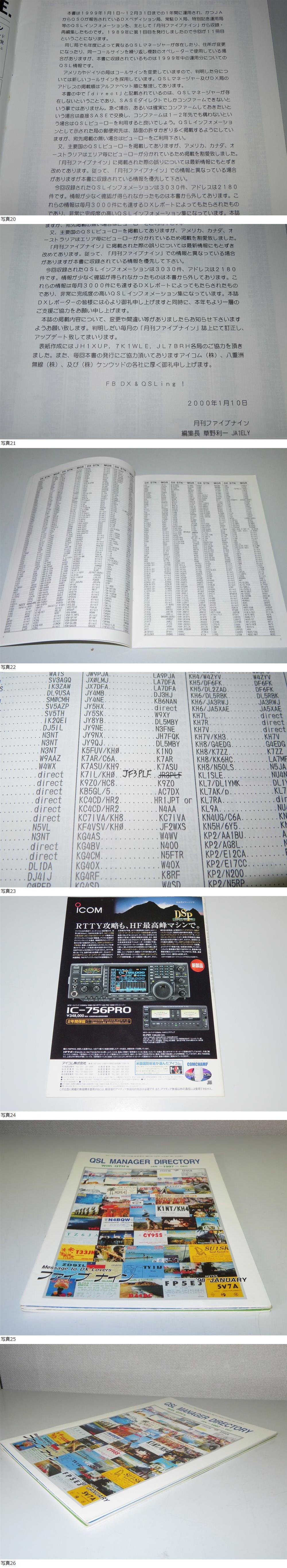 ※◎【本文の解説をよく読まれてご検討ねがいます。】 誠に申し訳御座いませんが24時以内に連絡、ご入金処理のできる方、および商品受領、確認後に取引ナビにて早急に「受取連絡」のできる方のみ入札願います。 また、評価が新規の入札者様は入札の際、質問等で予め連絡ください。事前連絡がない場合はこちらで入札の取消(削除)を実施しますことを予めご了承願います。 商品名 :★月刊ファイブナイン 月刊59 DXペディション QSLマネージャーディレクトリー 1998年~2000年3冊 一括 【中古本(書き込み有)】★ 付属品 :なし。 商品詳細 :月刊ファイブナイン誌のQSL MANAGER DIRECTORYです。書き込み有りの古本ですが先に出店中の月刊59誌と共に検討頂ければ幸いです。 交信した海外のアマチュア局、DXペディション局のQSLマネージャーからカードを取得するために活用しました。おかげさまでDXCCの申請に役に立ちました。 1999年の物は表紙・裏表紙にテープ修復が有ります。 1998年~2000年の3冊共書き込み、アンダーライン等は有りますが程度は悪くないと思います。 当時の貴重な資料と思い大切に保管しておりました、どなたか利活用のできる方宜しくお願いします。 外観の詳細は商品説明欄に写真をアップしましたので参照願います。 3冊閲覧、講読には全く問題ございません。 当方禁煙者ですのでタバコ臭はございません。 ※年代がダブりますが別途6冊も出店中です併せてご検討頂ければ幸いです。 当該商品の内容については答えられない場合がありますので予めご了承下さい。 それでもご不明な点等がございましたら答えられる範囲でお答えします。 説明文の理解力の無い方、思い込みの激しい方はくれぐれも入札しないで下さい。 ほかの新品等保証の有るものをお探しください。 説明文をよく読まれた上、入札頂けます様お願い申し上げます。 入札終了間近のご質問もお答えできませんのでご了承下さい。 到着後の使用方法等などについてサポートは出来ませんので予めご了承ねがいます。 発送方法は日本郵便のゆうパケットポスト(追跡可能)を予定してます。 以上宜しくお願いします。 |