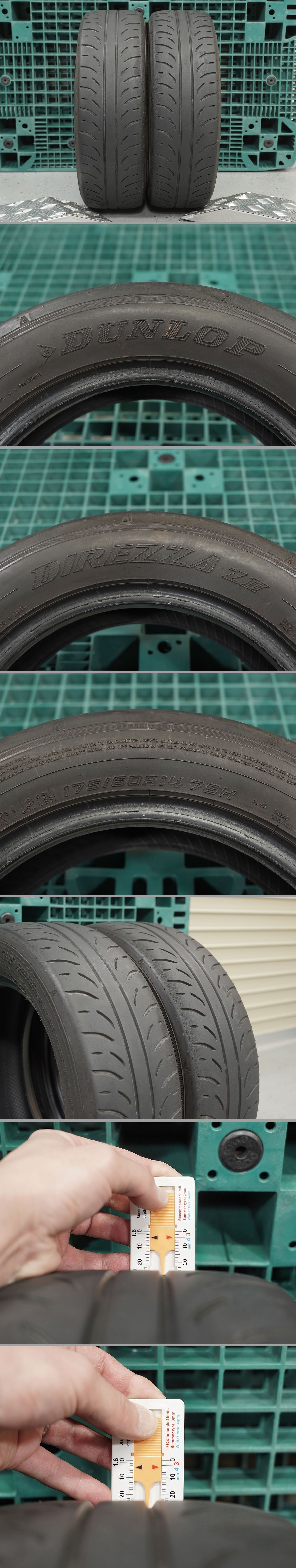 【商 品】 ダンロップ ディレッツァ ZⅢ 175/60R14 79H 残り溝:約4mm 製造年週:2020年09週製造×2本 【商品状態】 ◎取外されるまでエア漏れ等の問題無く使用されていた物!! ◎簡易清掃後、小石などの異物を除去しながら全体をチェック済み!! ◎ビードの切れや傷・パンク修正や セパレーション等の形跡・エアーが少ないまま走行した様な形跡・ その他ダメージとなる様な大きな傷など無く良好!! ※中古タイヤとなりますので、トレッド面に傷や小石などの異物を 噛みこんだ跡など有り。 ※その他、細かなヒビや汚れ・スレ・保管時の跡など有り。 ◎溝少なめの為、格安スタート!! ◎取外されるまで問題なく使用されていた物!! ◎人気のハイグリップタイヤ!!ディレッツァZ?!! ◎ドリフト・グリップ/サーキットでのの練習用・スタンス系車両の展示用に!! | |