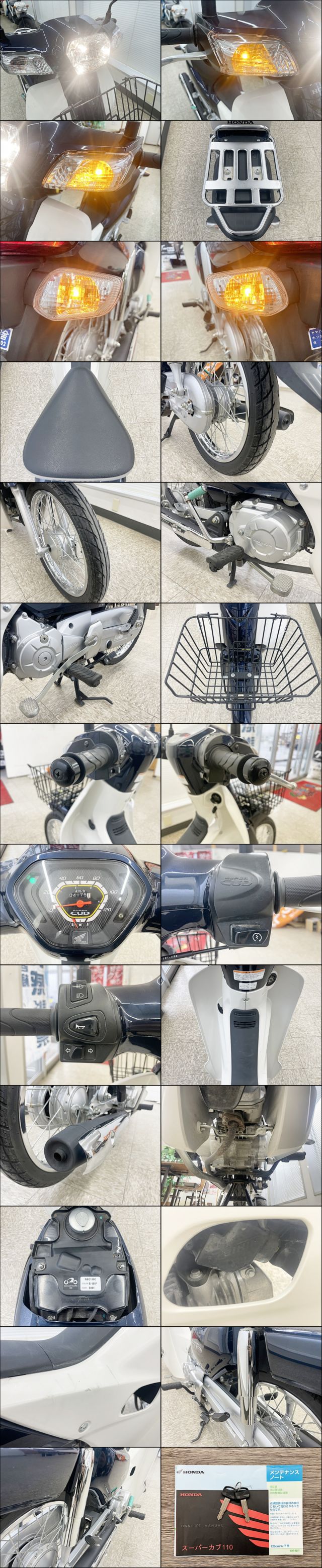 | 商品説明 | たくさんの中古車の中から当店の在庫をご覧いただき、誠にありがとうございます。この車への「お問合せ」・「無料見積り依頼」・「在庫確認」はお気軽にどうぞ! ご質問などがある場合は、LINE公式アカウントがスムーズです! ★LINE公式アカウント★ https://lin.ee/BuwyJc0 ID検索なら「@112gmxnp」 友だち登録をお願いします! ●車両情報 車種名:ホンダ スーパーカブ モデル年度:2012年 排気量:105cc 走行距離:4175KM(実走行) モデルコード:NBC110C カラー:ブルー/ホワイト 車検満了:不要 自賠責保険:令和10年4月付き 事故歴:なし エンジン型式: エンジン:4ストローク 燃料供給方式:フューエルインジェクション エンジン始動方式:セルフスターター ●車両状態 エンジン:始動確認済み 外装状態:ややキズ汚れあり 事故歴:なし 修復箇所:なし 修復歴箇所:なし チェーンたるみ:2-3cm正常値 スプロケ:摩耗していない その他状態症状: KEY本数:1本 Fタイヤ:6部山程度 Rタイヤ:6部山程度 ヘッドライト、ウインカー、テールランプ、ホーン:作動OK その他: ●名義変更 落札者ご自身での名義登録をお願いしております。 ご入金確認後、必要書類をお渡しいたしますので、市役所や運輸支局で登録をお願いします。 平日の対応が難しい方は、別途当店で代行手続きも承っておりますので、 その場合は当店までお気軽に見積もりについてご相談ください。 ●納車 名義変更完了確認後の引き渡しとなります。 ●陸送 全国対応可能※離島を除く 別途料金が掛かります。 ●質問などがある場合は、LINE公式アカウントをご利用ください。 ★LINE公式アカウント★ https://lin.ee/BuwyJc0 ID検索なら「@112gmxnp」 友だち登録をお願いします! |