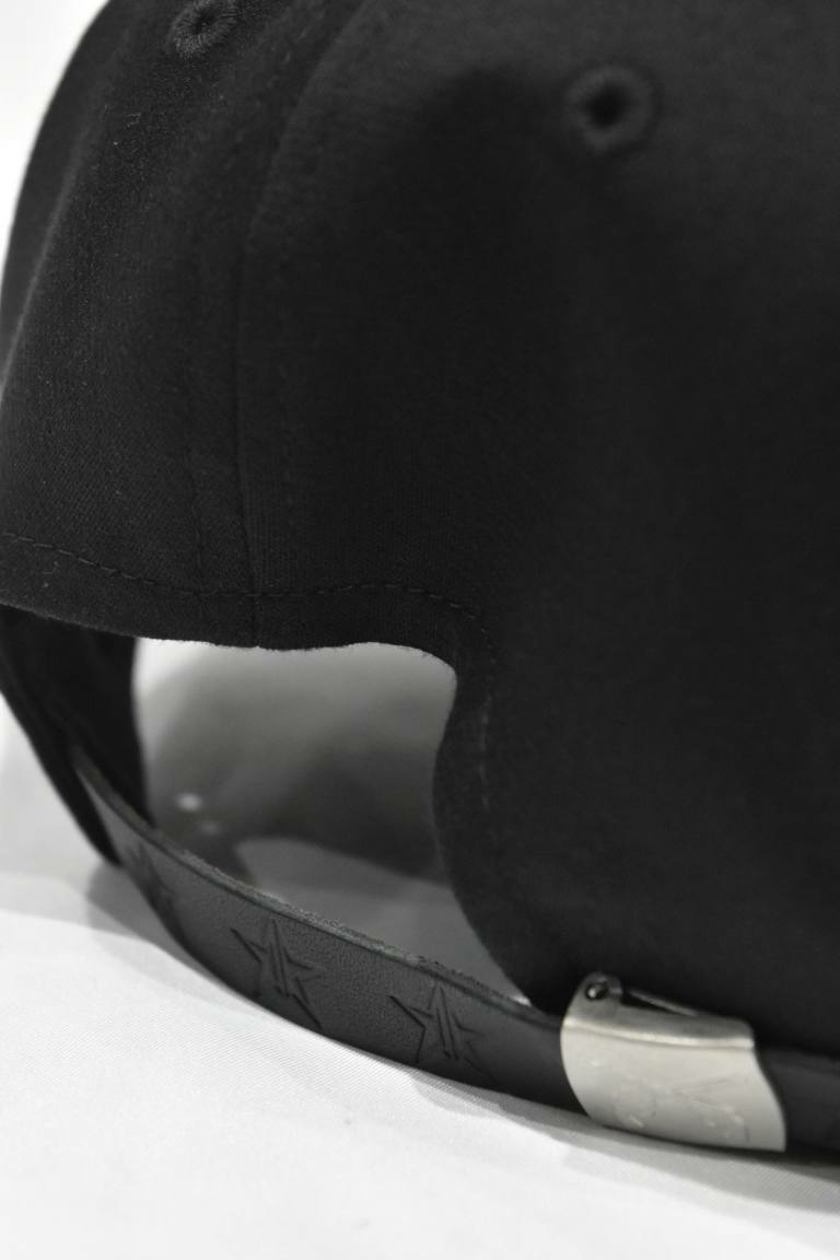 今回のコラボCAPの為だけに双方のメインアイコンをミックスした柄をスワロフスキーで表現したスペシャルアイテムです。本体6枚パネルハギのクラウンは、綺麗な丸みを帯びたKAZUYUKI KUMAGAIの型を採用し被りの良さ、そして綺麗なシルエットを描いています。バイザーは細くシャープ感のあるroargunsの型を採用してそれぞれの特性を生かしたハイブリッドな形にドッキングし仕上げたスペシャルアイテムです。コラボレーションの証として両ブランドのビスネームタグが縫い付けられているのもポイントです。追加予定無しで既に完売しているアイテムになりますのでこの機会に是非とも宜しくご検討下さいませ。