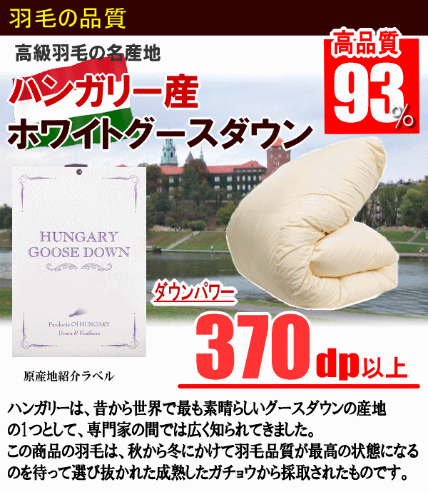 ■中身:ハンガリー産ホワイトグースダウン93% フェザー7%