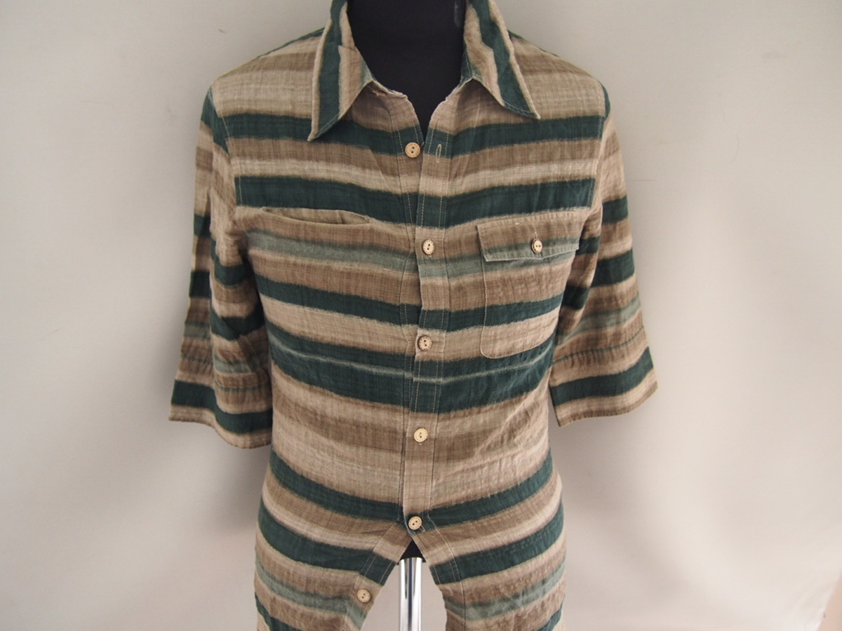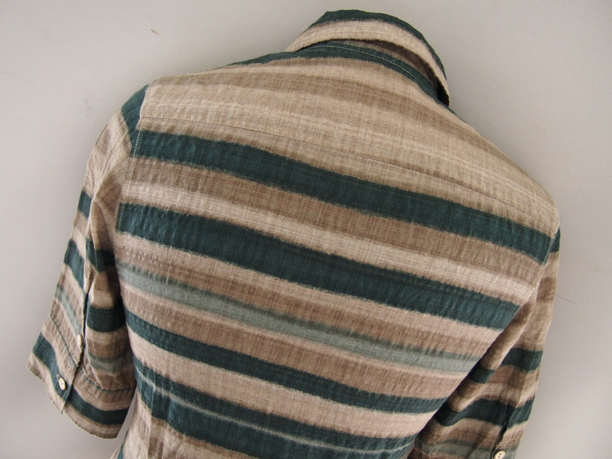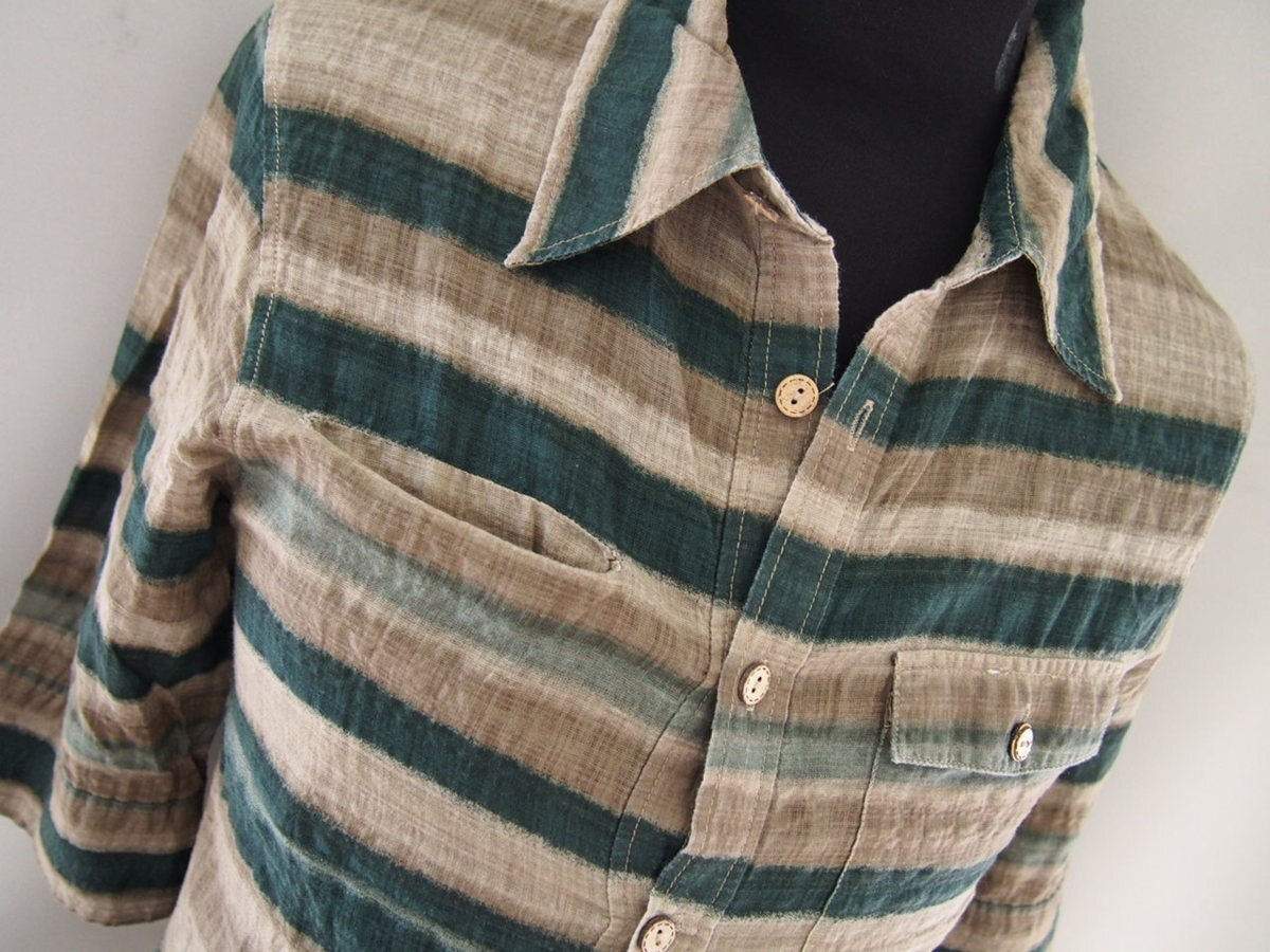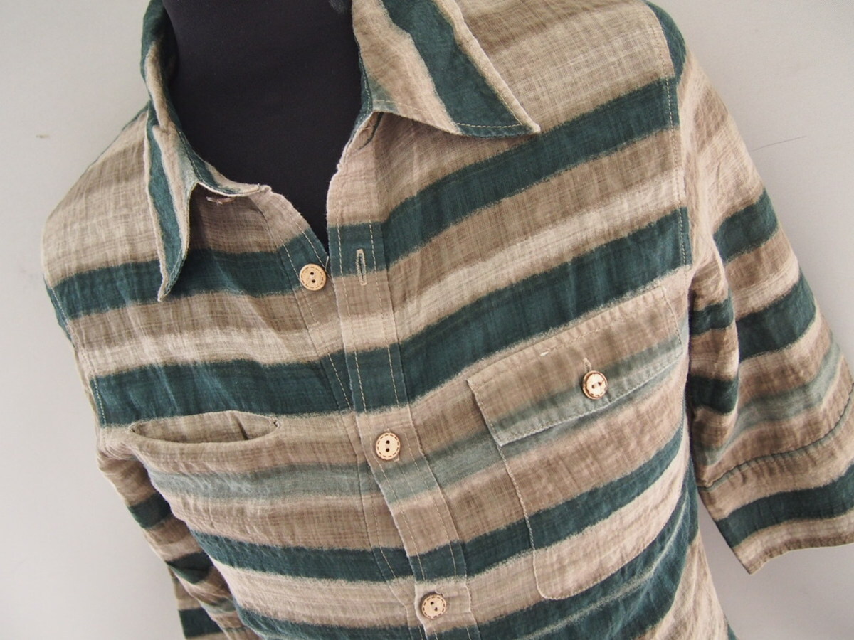 ボンズアンドピース★六分袖シャツ★レーヨン混★ボーダー柄★Mサイズ★BONDS AND PEACE | |||||||||||||||||||