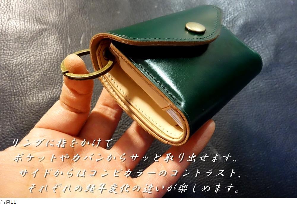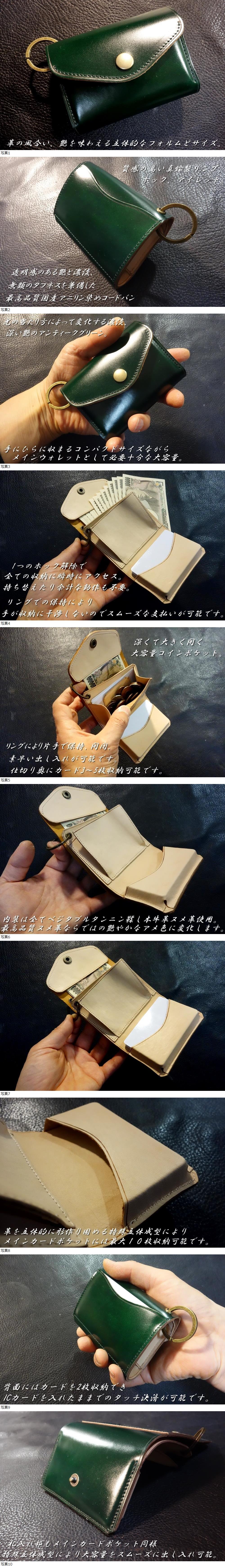 | ◆リングミニウォレット◆高品質国産本牛革アニリン染めオイルコードバン アンティークグリーン 日本製 受注製作(納期約10日) |