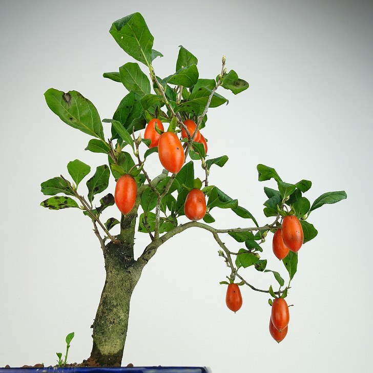 | ■植物ですので撮影時期や季節によって剪定などの手入れにより写真から変化がございます。撮影日をご確認のうえ、ご注文ください。 ■翌年の実付きをよくするために葉が落ちた後の11月末~12月にかけて摘果しています。お届けの商品にはロウヤガキの実がない場合がございます。 ■老爺柿の種類は沢山あり、品種の記載がない商品は仕入れの時点で確認ができておりませんので、その旨ご了承のほどお願いいたします。 【老爺柿盆栽】 開花時期は4~5月頃に花を咲かせます。雌雄異株で、実を成らすためには雌木と雄木が必要になります。小さな実が成る渋柿で、実が枝にぶら下がって成る特徴があります。老爺柿は沢山の品種があり、実の形状や色も様々で、丸い形から細長くとがったもの、大きさも大小があり、色合いも赤みを帯びた橙色から黄色、朱赤など豊富にあります。 |