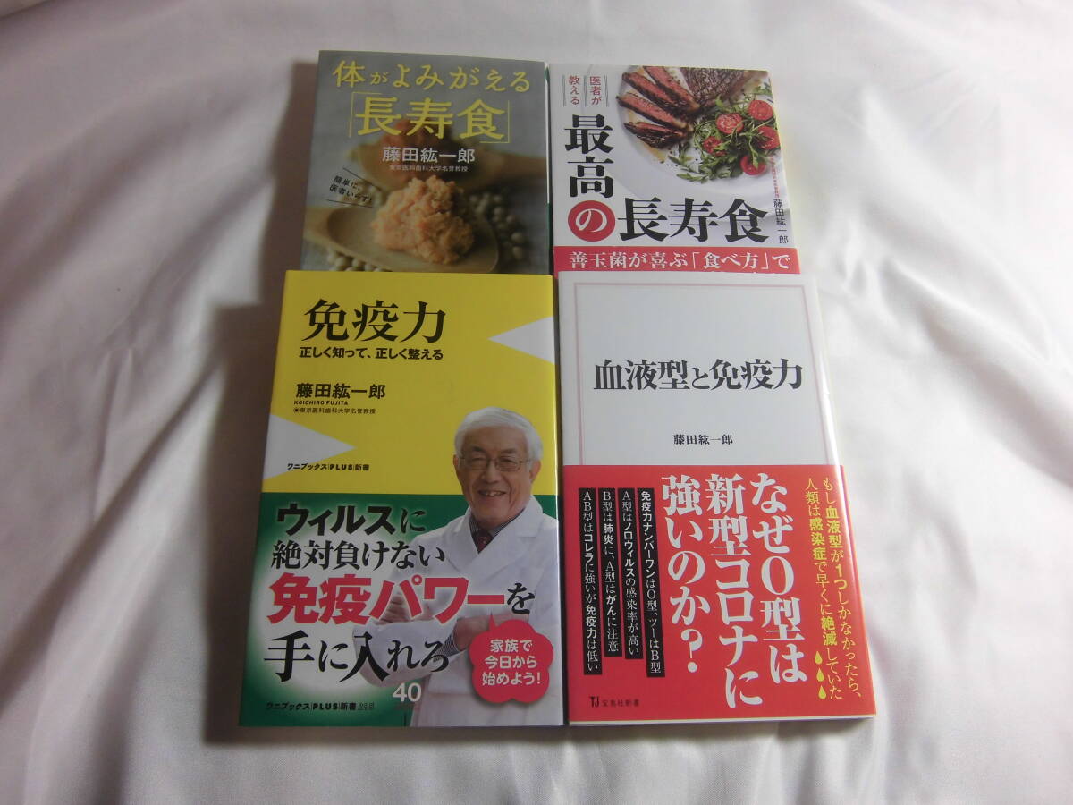 藤田 紘一郎 (著)」藤田 紘一郎 (著) 2018年初版定価520円+税。と「免疫力 - 正しく知って、正しく整える -」藤田 紘一郎 (著) 2020年初版2020年2版定価880円+税。と「体がよみがえる長寿食」藤田 紘一郎 (著) 2014年初版2015年11刷定価590円+税と「血液型と免疫力」藤田 紘一郎 (著) 2020年初版定価880円+税。の計4冊セット。