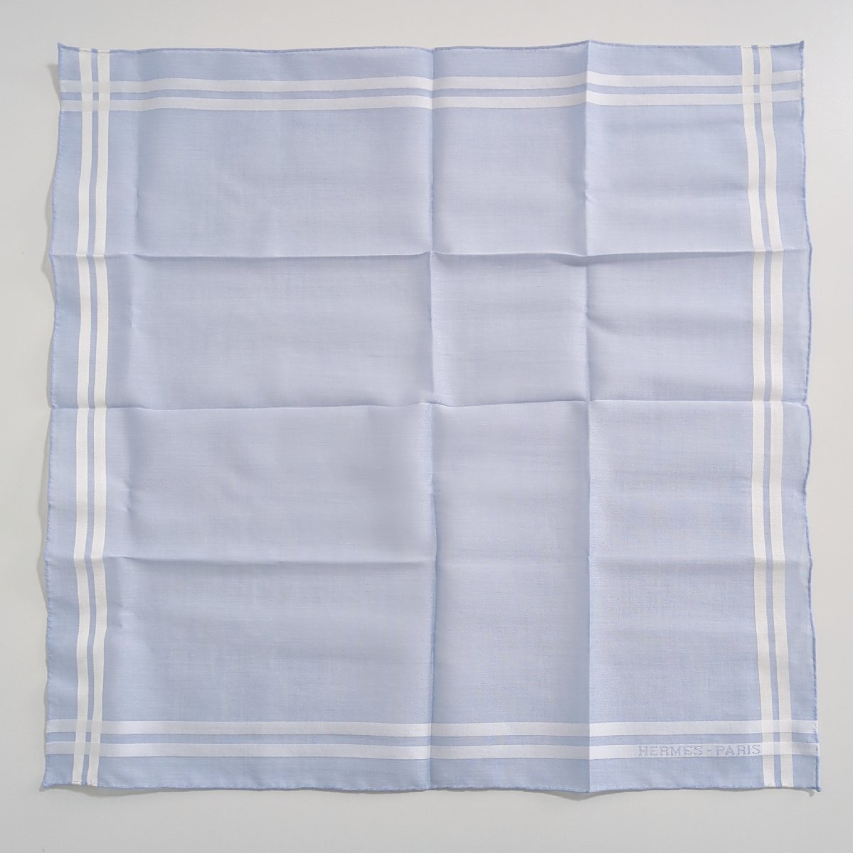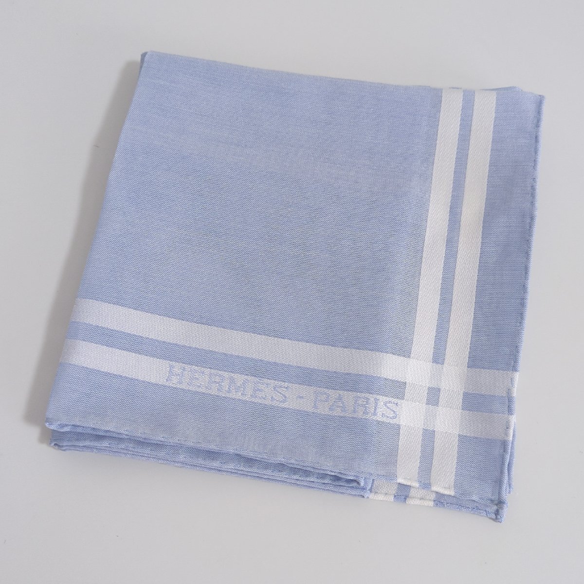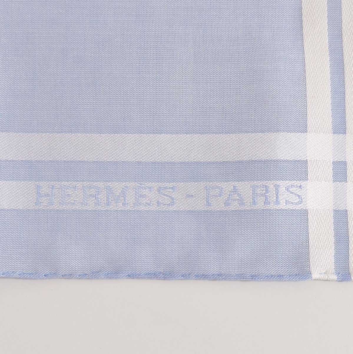S2746●送料198円~ 美品 HERMES エルメス ハンカチ コットン ブルー系 水色 箱付き