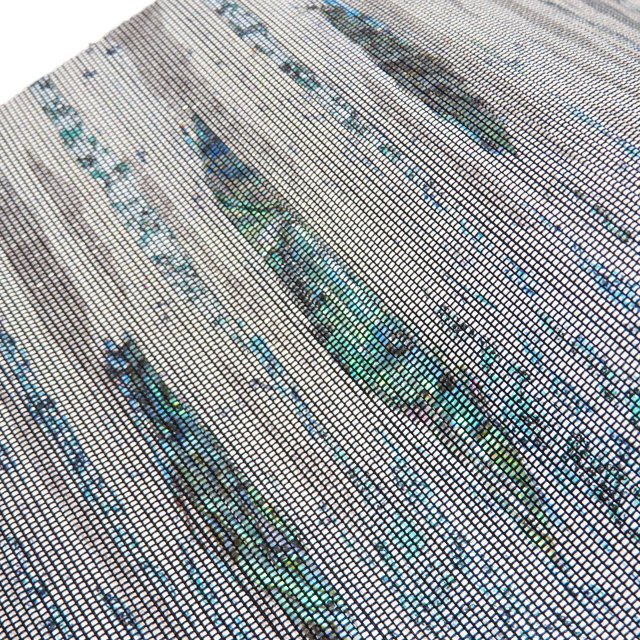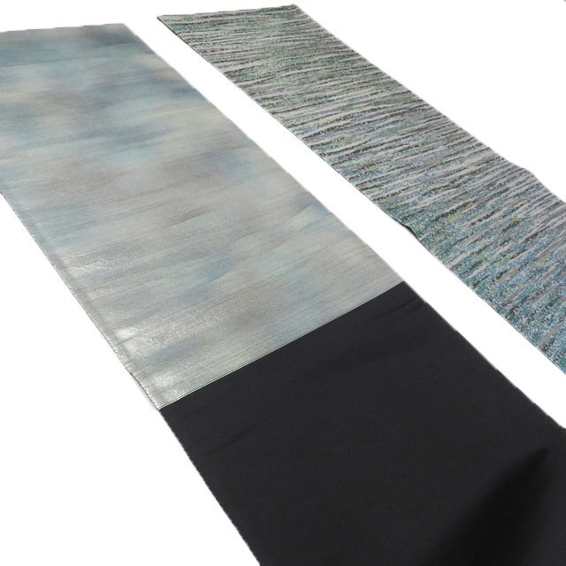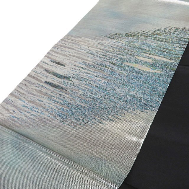 サイズ 446cm x 31cm 素材 正絹 商品ランク A お色 緑色 薄灰色 黒色 金銀 未使用の美しいお品物です。 写真に写っている帯のみの販売で、小物等の付属品はついておりません。 一部商品は実店舗・他サイトでも並行して販売しておりますので売り切れの際はご了承ください。 その他多数販売中 n | ||||||