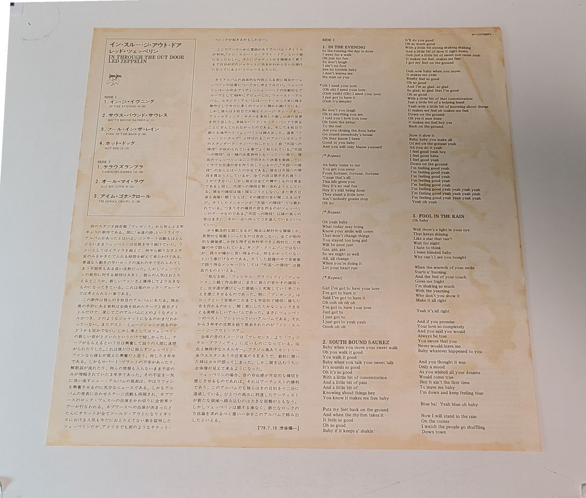 | 商品の状態 「形態」…LPレコード 「出演、タイトルなど」…LED ZEPPELIN IN THROUGH THE OUT DOOR / レッド・ツェッペリン 「レーベル、メーカー」…SWAN SONG 「ディスクの状態」…ディスクに少しの小キズや汚れがあります。 「ケース・ジャケットの状態」…ジャケットに汚れや変色・傷みがあります。多少の湿気臭があります。 「その他の付属品」ジャケットスリーブと解説紙とディスクスリーブ付きです。付属品に汚れや変色・傷みがあります。 記載のない付属品はありません。 *特に記載がない場合でも、通常の使用、再生には支障の無い程度のキズ、汚れがある場合がございます。 *画像に写りきらないキズ、汚れがある場合がございます。 *「処分品」「ジャンク品」として出品している商品は、再生不良を含め、一切のクレーム、返品、返金はお受けできません。ご了承の上入札、購入してください* | |
