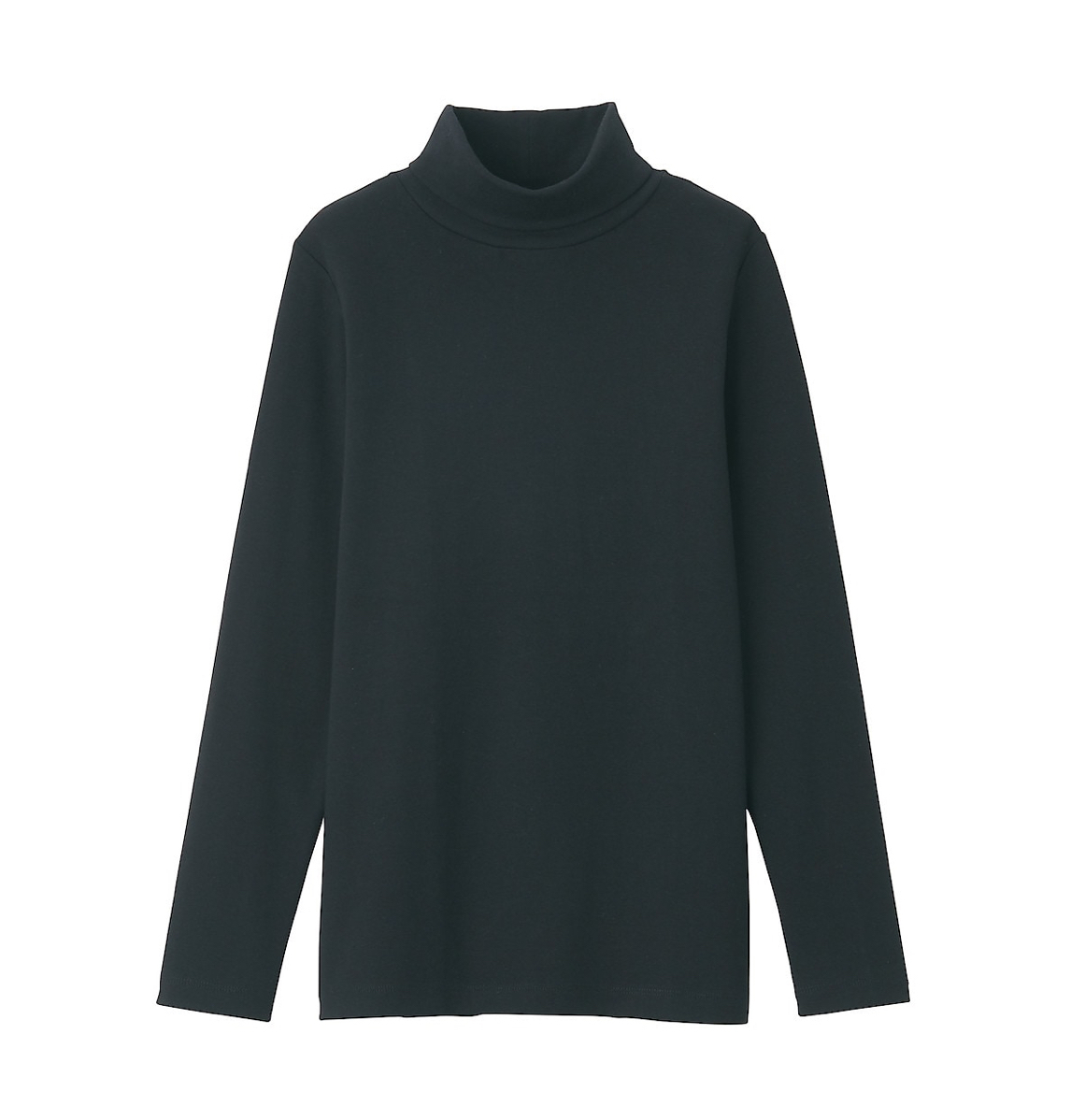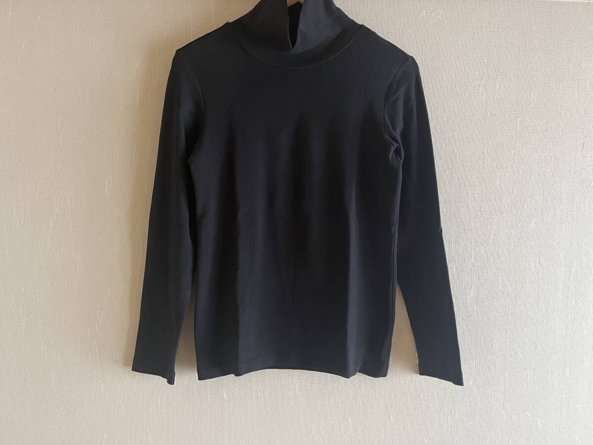 USED MUJI ストレッチフライス編みタートルネックTシャツ 婦人L・黒