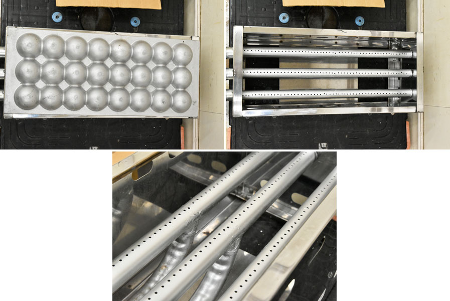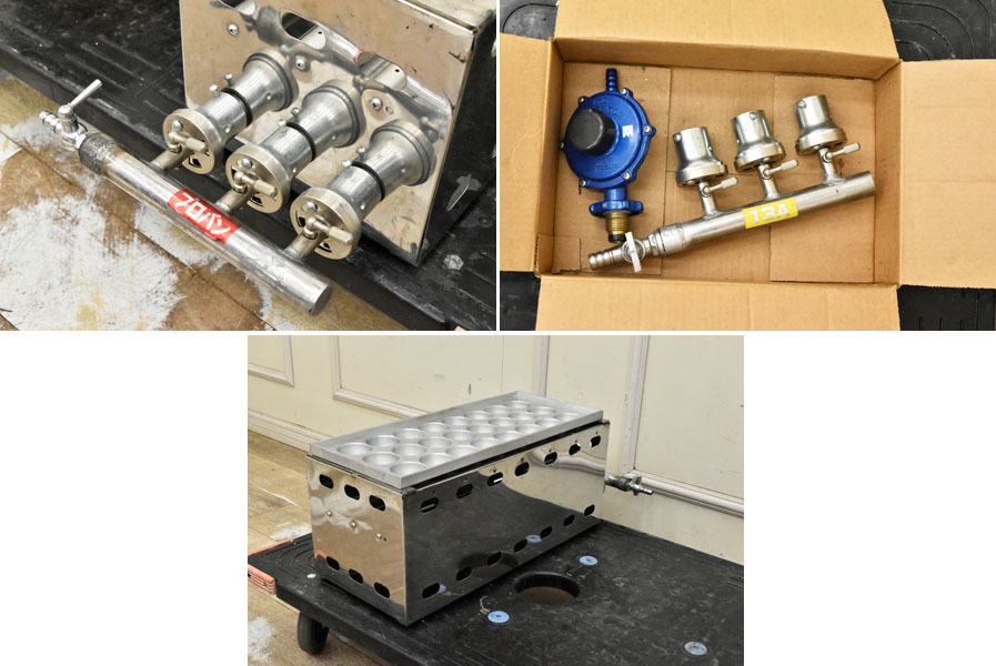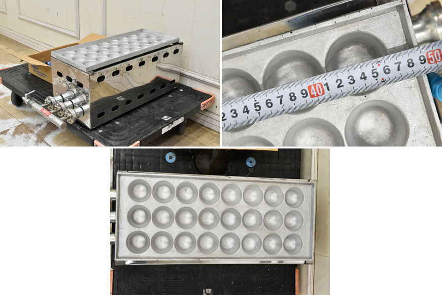 ----------------------------------------------------------------------------------------- ●送料や注意事項は必ずご確認下さい。落札後にトラブルになるケースが増えております。● ◆コンディションは写真・文章にて記載して有りますが、全てのキズの写真は掲載致しておりません。大きなダメージを除き見落とし、記載漏れが有る事はご了承下さい。 ◆当サイトにて出品する商品は多種多彩で、当方商品知識の無い物も多数ありますので落札後の質問やメンテナンス等にはお答えできません。 ◆入札された時点で、画像、文章をご理解していただいたものと判断させていただきます。不明な点は前もってQ&Aからお願い致します。入札後の質問やお電話等でのキャンセルは一切受け付け致しません。 ◆商品説明に「ノークレーム」と記載しているものに関しては、如何なる状況で届いても保証致しません。詳しくは注意事項の「商品到着後について」の最後に記載しておりますのでご確認下さい。 ---------------------------------------------------------------------------------------- 未使用品と思われますが断定は出来ません。 使用感はなく、状態キレイです。 幅22(28) 奥51(62) 高21(24)cm LPガスでの動作は確認しました。都市ガス用の管ありますが、当方設備がないので、都市ガスは使えるか分かりません。 付属品は画像に掲載しているものだけです。台車は付属しません。 こちらのお品は運送事故を含めノークレームノーリターンでの出品となります。 | ||