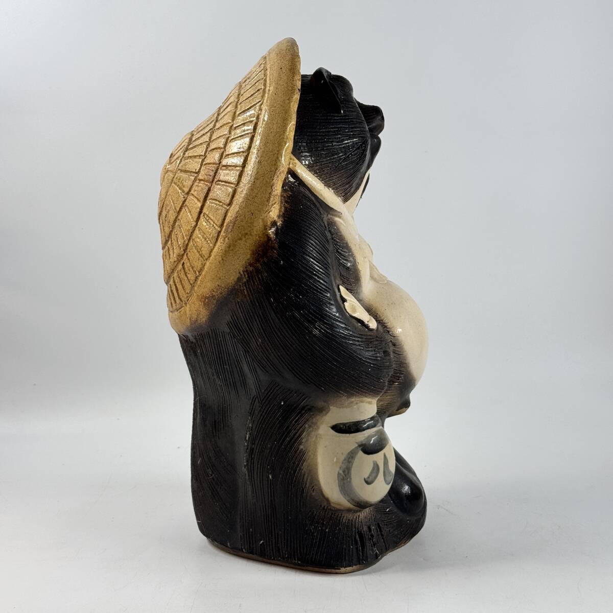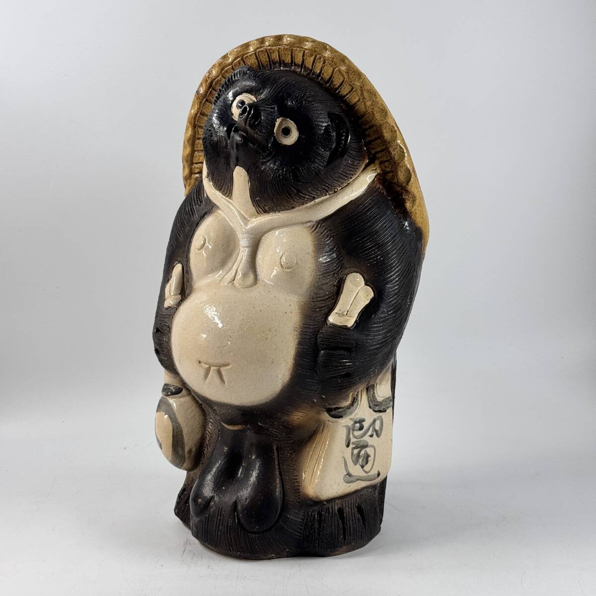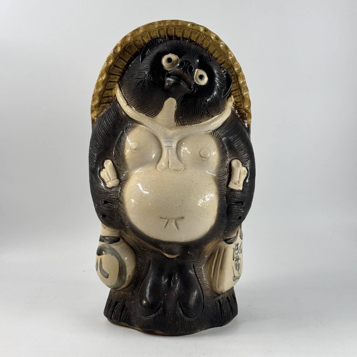 信楽焼 窯元 作家名不明 立像 たぬき タヌキ 狸 幅22.5㎝×奥行21㎝×高さ39.5㎝ 縁起物 他抜き 商売繁盛 八相縁起 経年保管品 現状品の出品です。