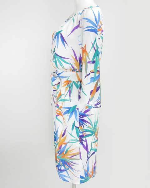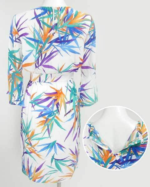 | ピンキー&ダイアン PINKY&DIANNE 白×グリーン柄7分袖ワンピース |