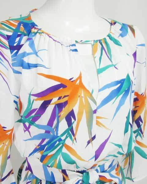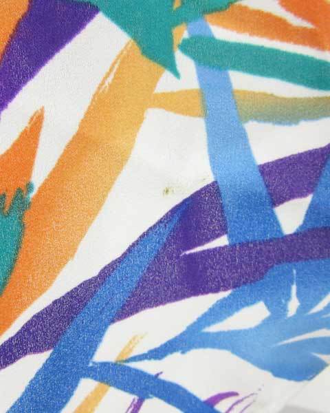 | コメント | 白地にブルー、グリーン、パープル等の プリントデザインがさわやかな印象 ギャザー入りのデザインがエレガンス ポリエステル素材なので旅行などにも コンパクトにたためておすすめ! |