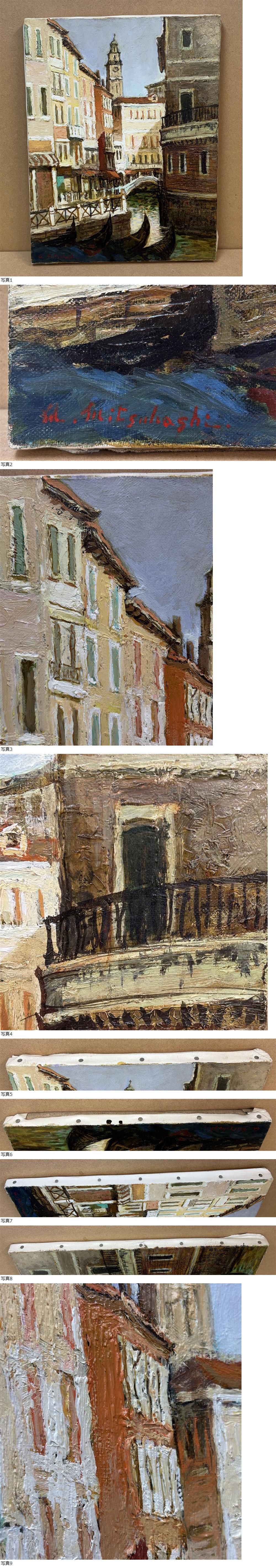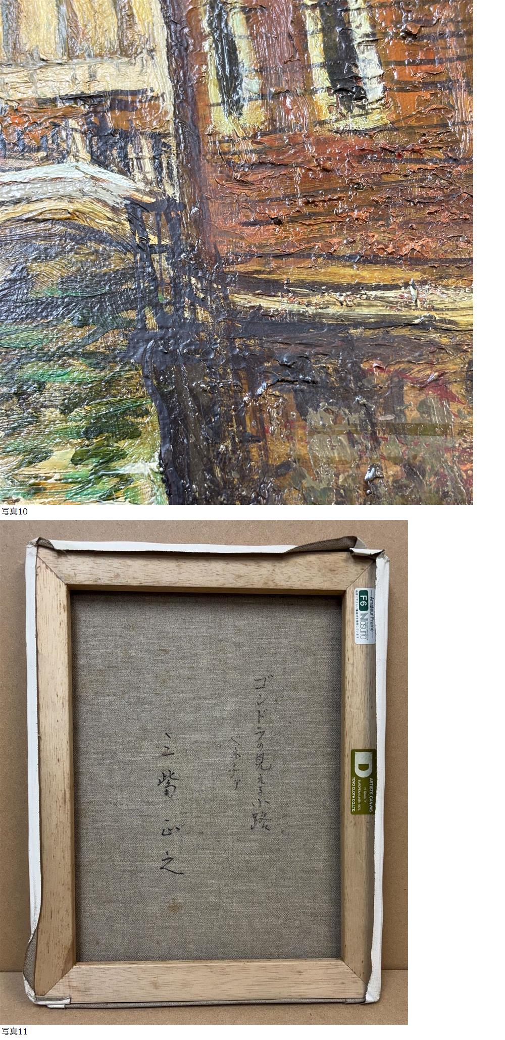 | 真作ツM1554/三觜正之 ベネチア ゴンドラの見える小路 F6号/イタリア 建物 街並 キャンバス 油彩画 洋画 風景画 元一創会員 元二紀会同人 |