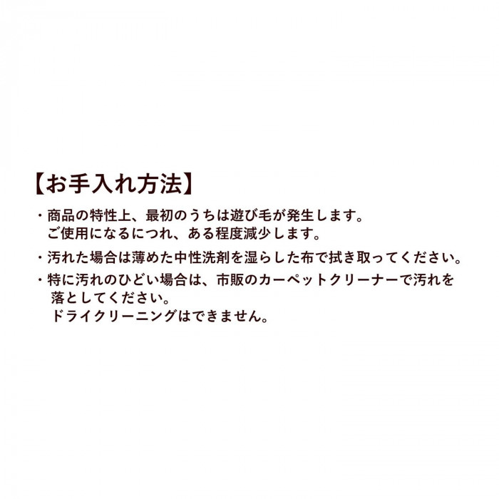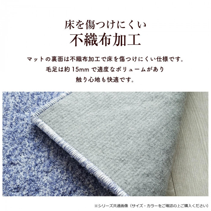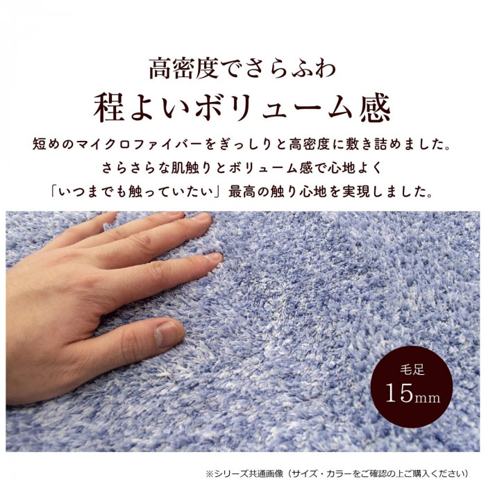 | 短めのマイクロファイバーをぎっしりと高密度に敷き詰めました。さらさらな肌触りとボリューム感です。マイクロファイバーは吸水速乾性があるので、夏は蒸れにくくサラッと快適。冬は繊維の間に空気を取り込み暖かく、一年中快適にお使いいただけます。裏面は不織布加工で床を傷付けにくい仕様です。 |