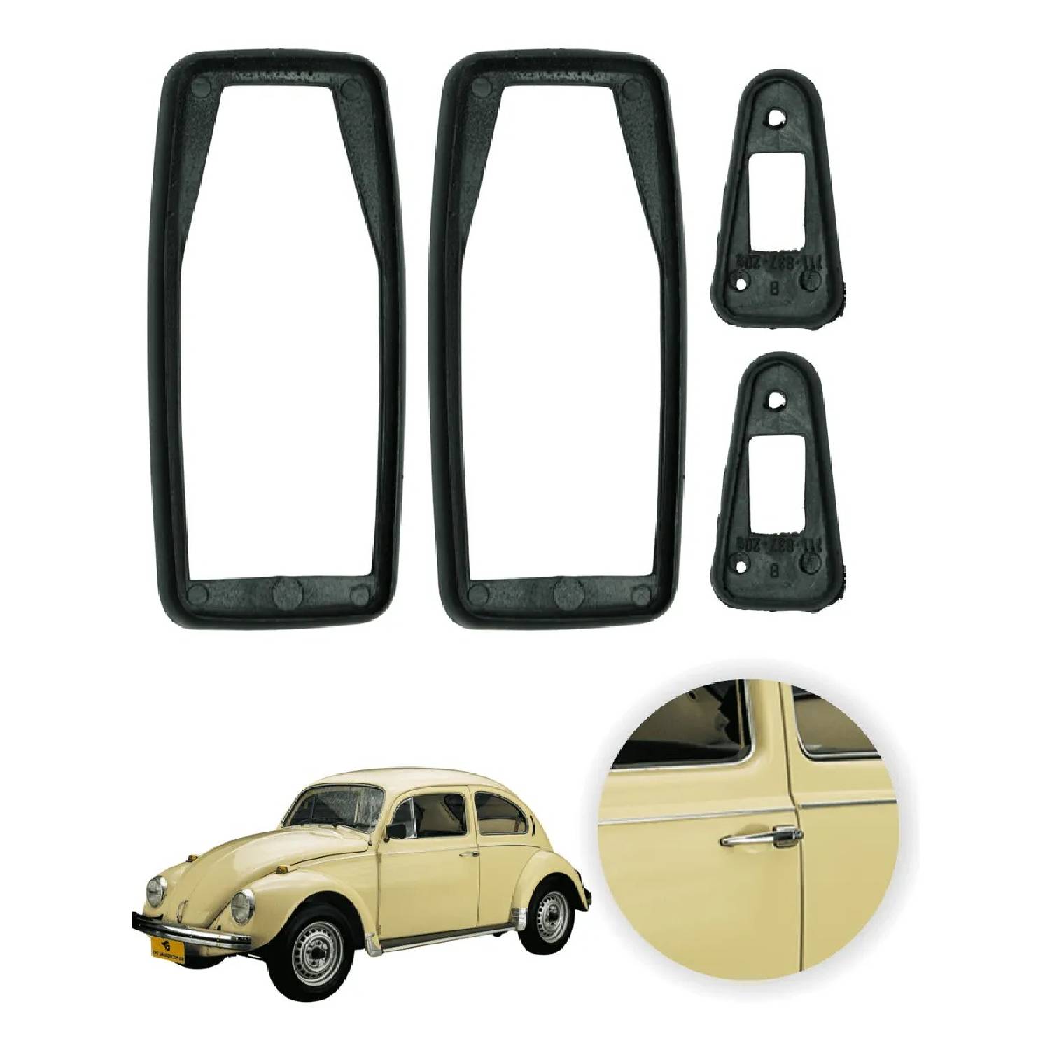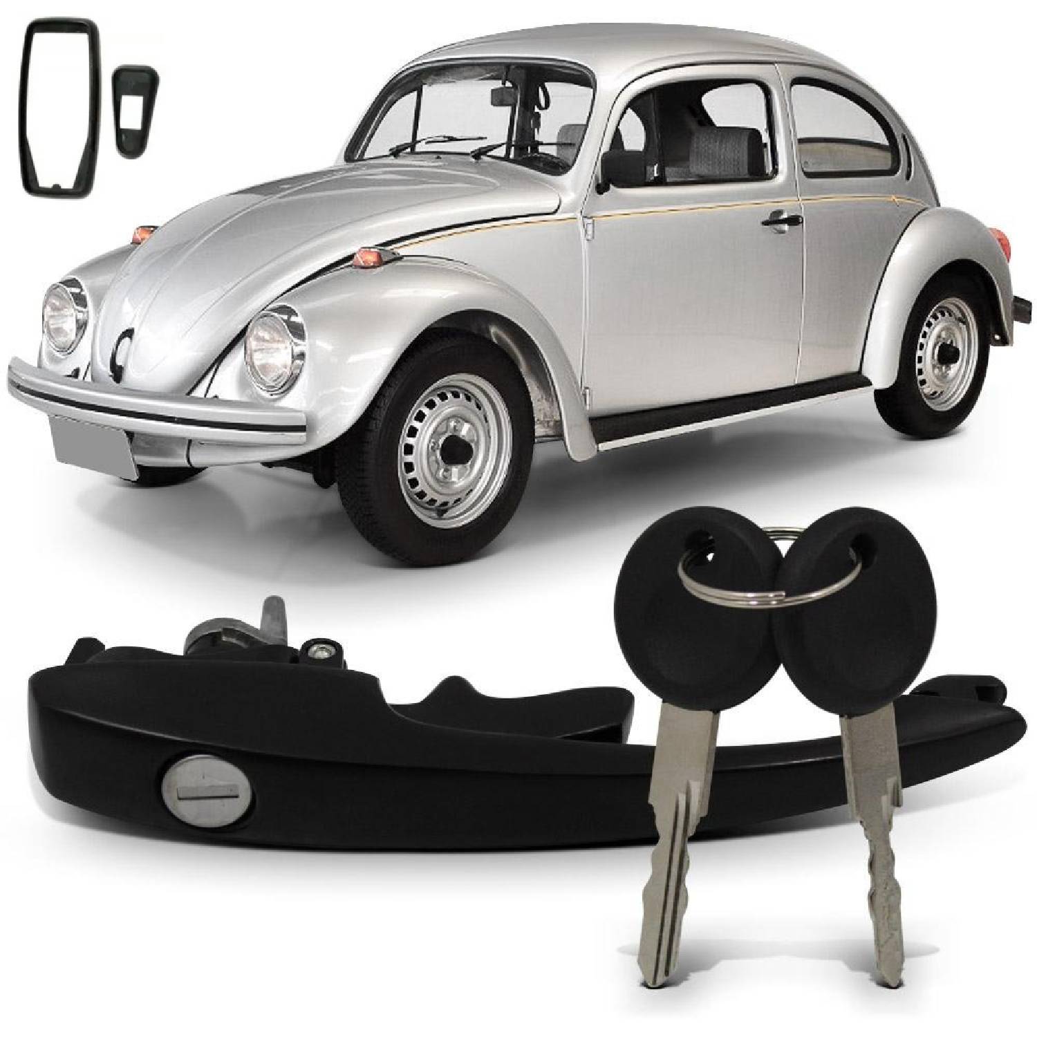 3個セット 外装 アウター ドア ハンドル フロント サイド ブラック 黒 ゴム シール 2個キー付き 空冷VW T1 ビートル ギア ブラジリア ヴァリアント 1968-1979年式