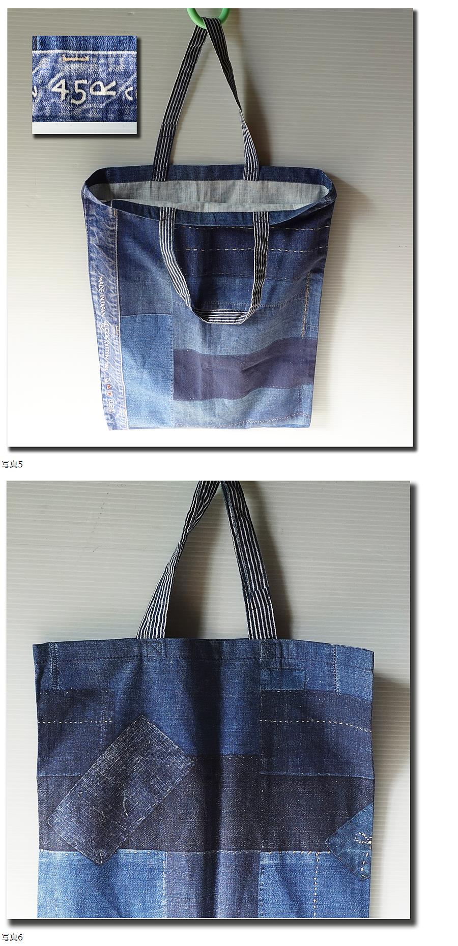 ジーンズを使った厚手デニムのパッチワークに見えますが、