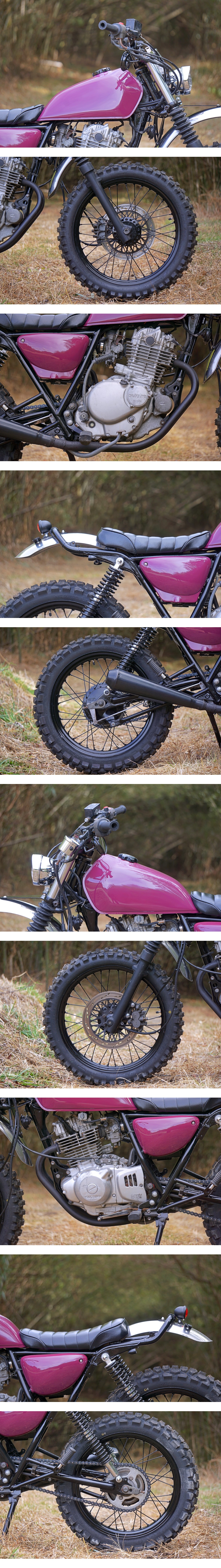 ペイント 前後タイヤ フロント・リアフェンダー ヘッドライト 前後LEDウインカー(ウインカーリレー含む) スピードメーター インジケーターランプ ハンドル ミラー ステンメッシュブレーキホース パワーフィルター マフラー シート リアサス テールランプ ナンバーマウント | |